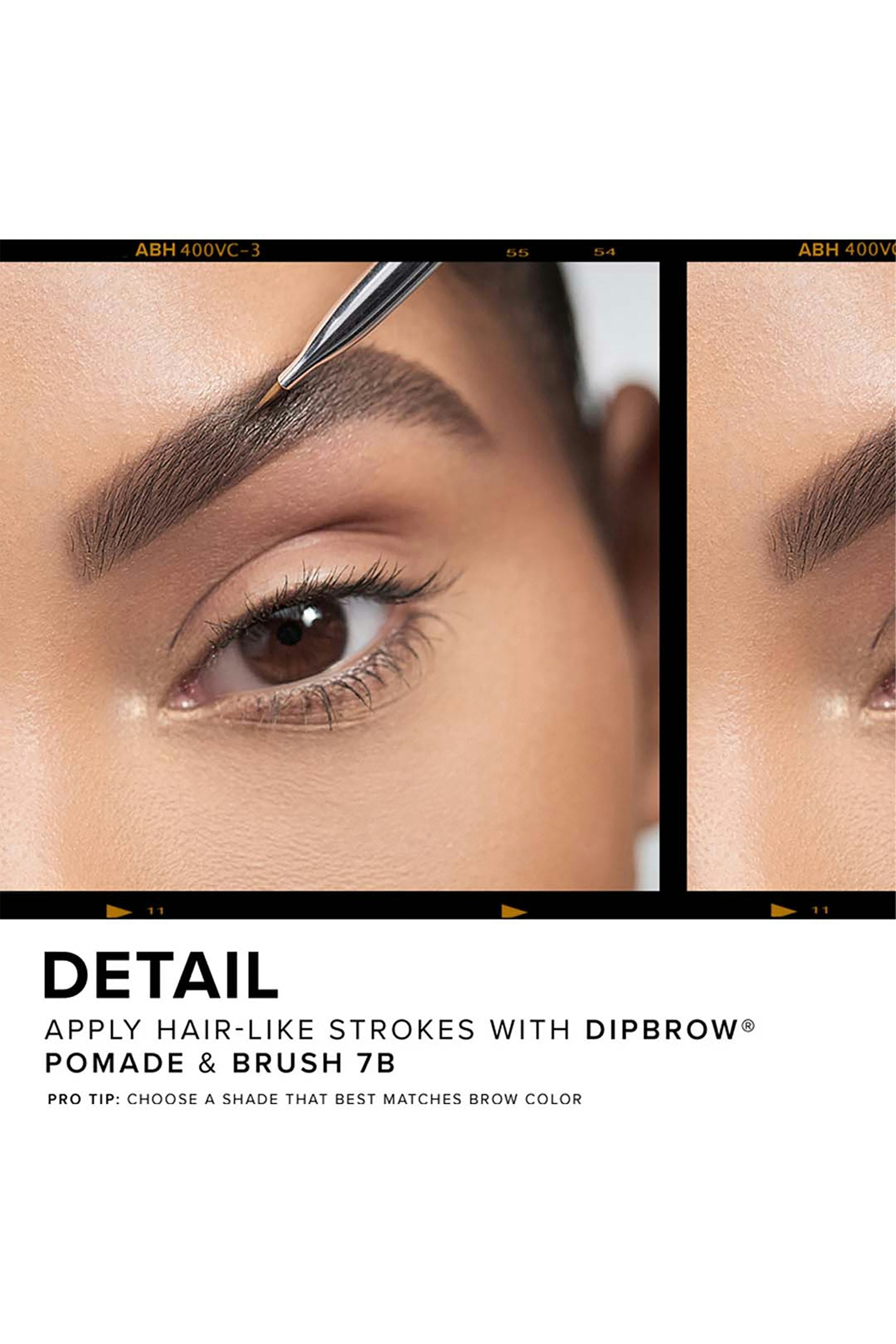 Anastasia Beverly Hills Dipbrow Pomade is a full-pigment, waterproof eyebrow pomade , to help fill in and detail eyebrows. The long-lasting, buildable formula glides on smoothly to skin and hair and allows time for blending before drying down completely to a matte finish. A professional-quality product, the eyebrow pomade allows for versatility in application, helping you achieve everything from natural-looking hair like texture to bold outlining and filling for more dramatic brow looks. Start with a minimal amount of eyebrow pomade on the brush. Since the product is highly pigmented, a little goes a long way. Using the spoolie end, comb brow hairs upward, then outline the lower arch of the brow using the product on the brush end. Blend the eyebrow color with the spoolie. Next, brush brow hairs downward, outline the upper arch of the brow and lightly blend with the spoolie.