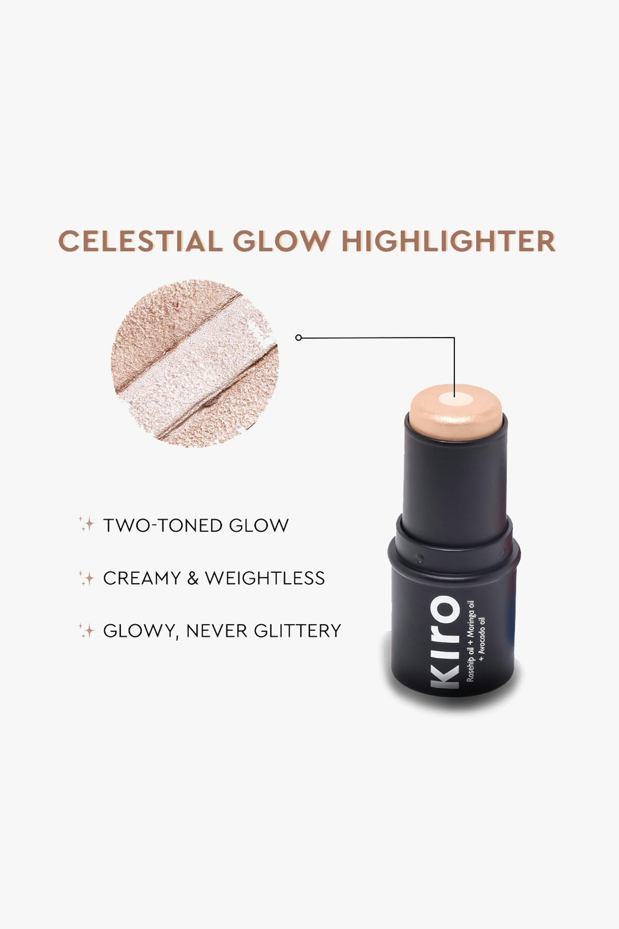 A multi-stick with a two-toned core that blends sheer highlight and soft shimmer for a glow that looks effortless. It catches light on high points without chunky glitter, giving a luminous, weightless finish that lasts through the day. Swipe directly on cheekbones, nose, or cupid’s bow, then blend with fingers or a brush. Build it up for more shine or keep it subtle for everyday wear. You can also dab on eyelids for a soft radiance that ties your look together.