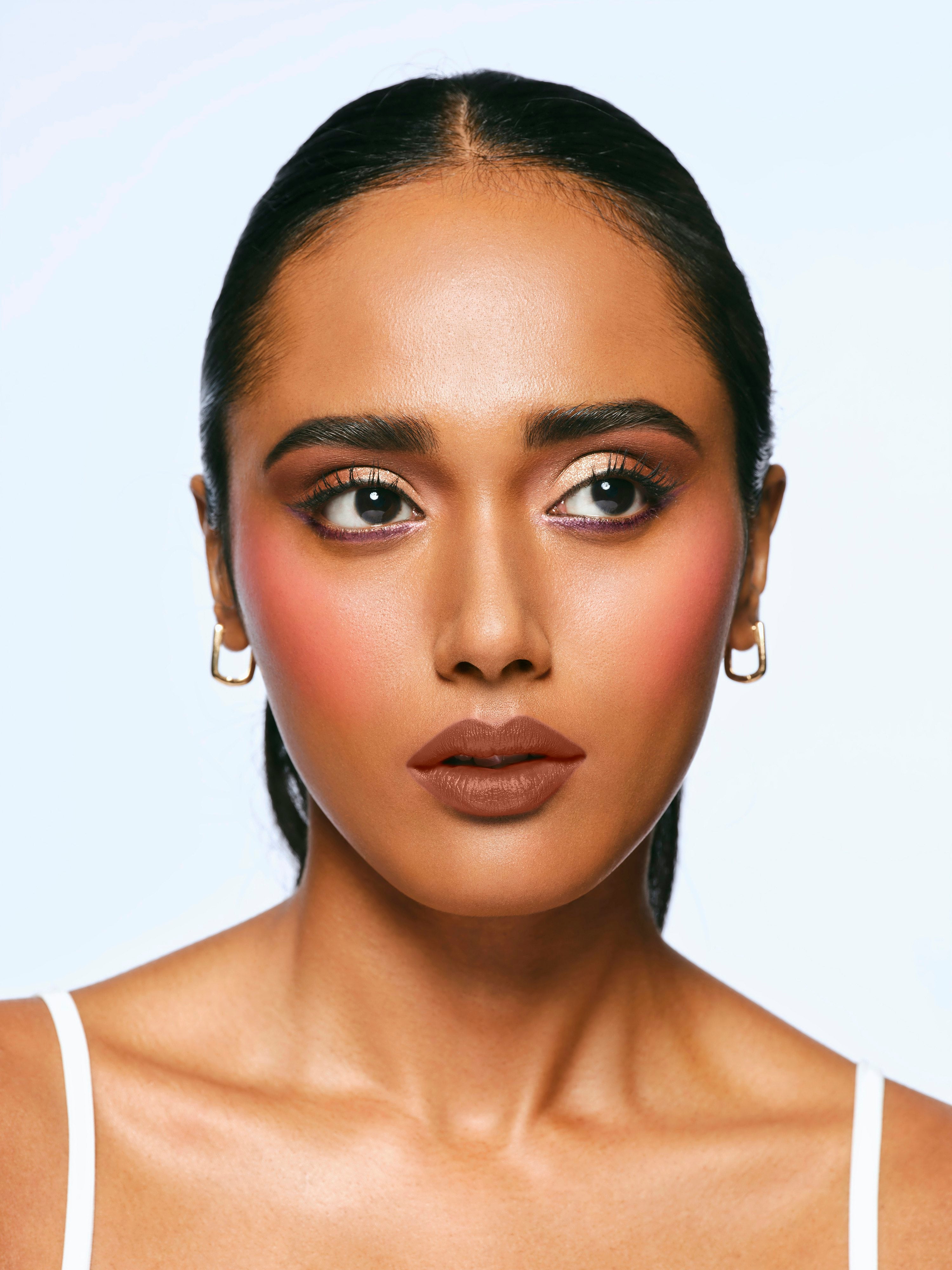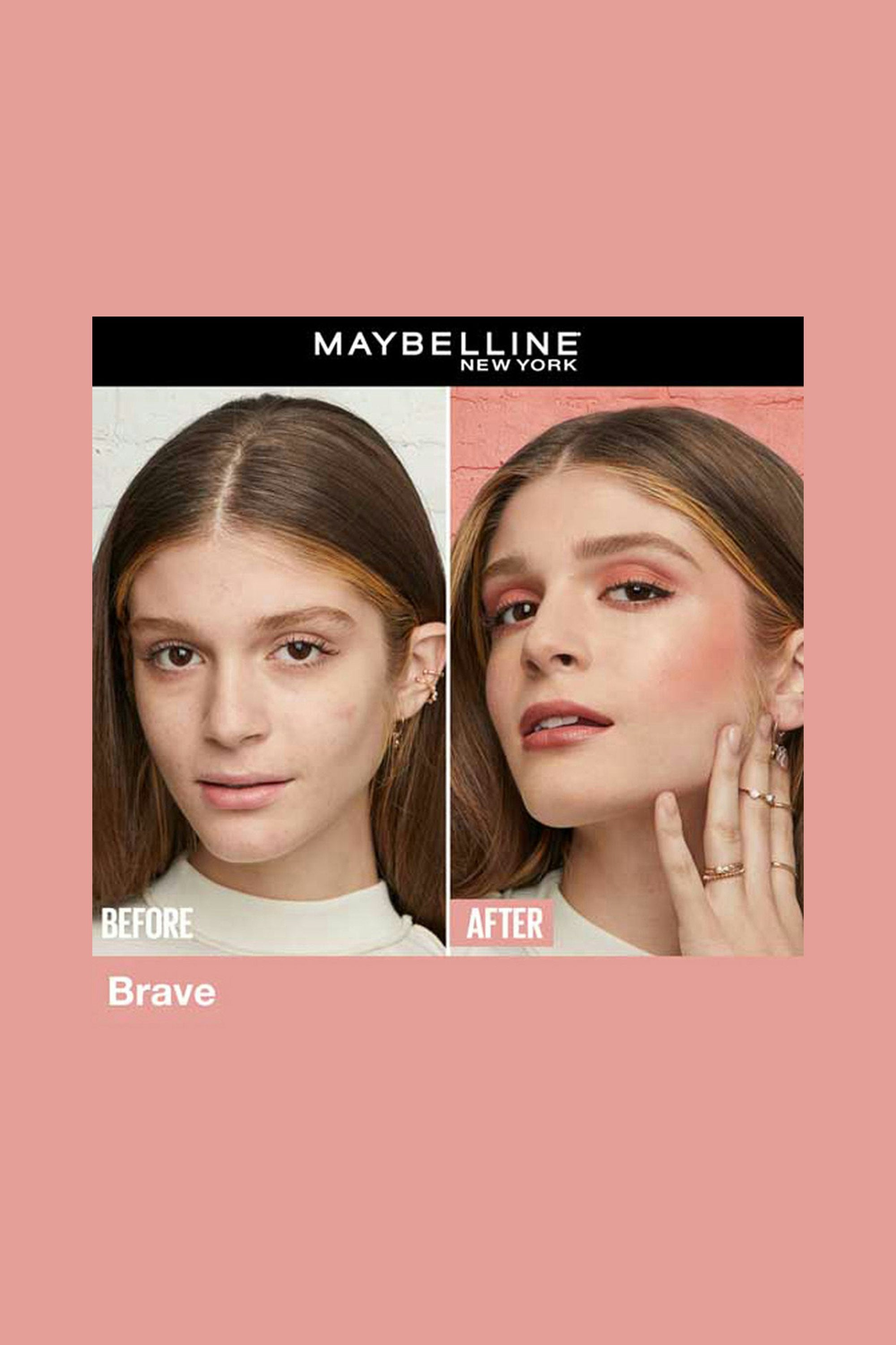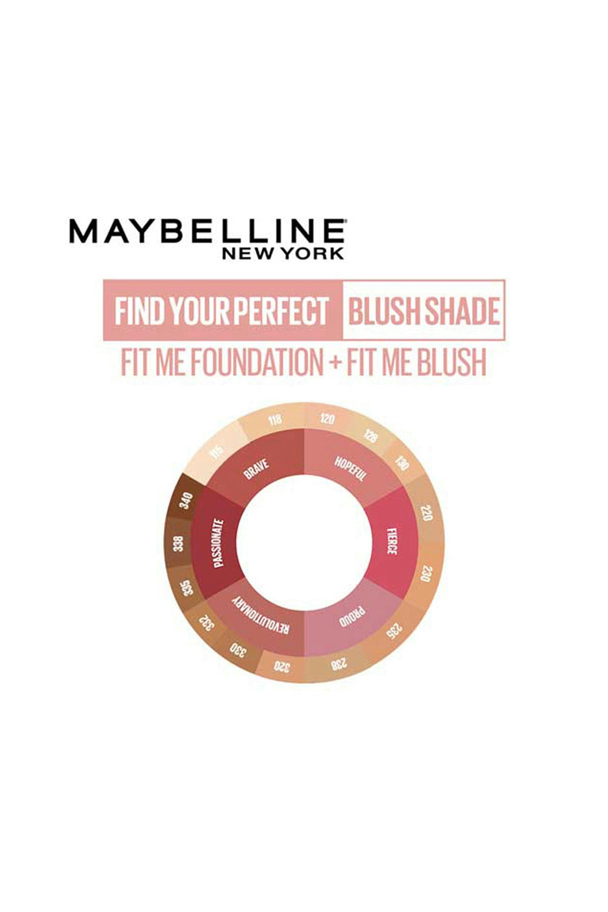 Get that natural flush with Maybelline New York Fit Me Mono Blush. This smooth powder blush lasts up to 16 hours and blends like a dream. It feels light on the skin and gives your cheeks a soft pop of color that looks fresh all day. You can even use it as eyeshadow when you're in the mood. Dip your brush in the blush and tap off the extra. Sweep it across your cheekbones and a little on the nose because why not? Start light and build it up if you want more color.