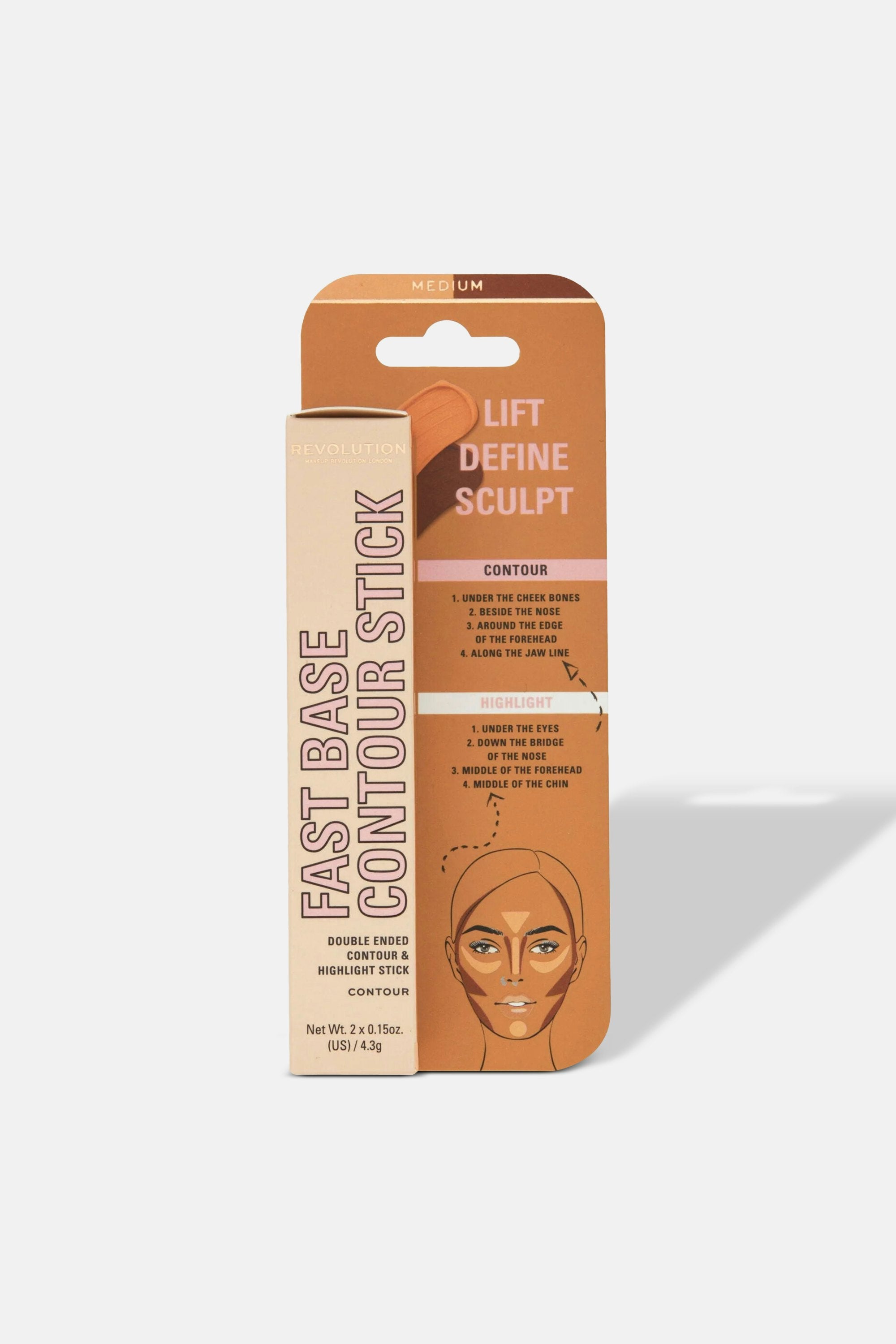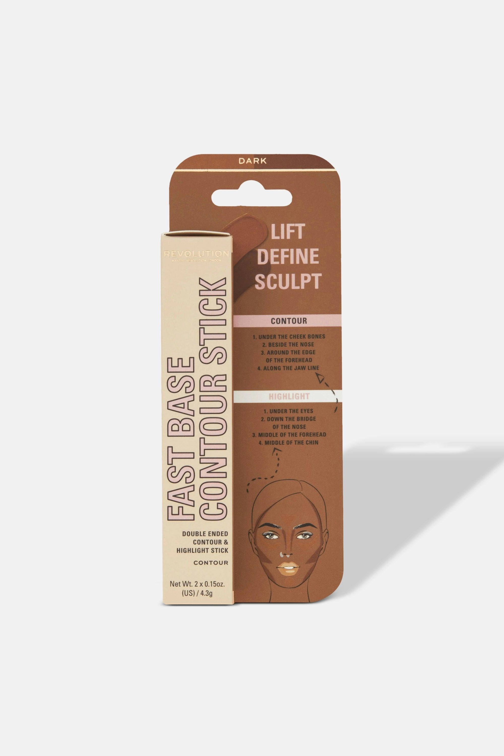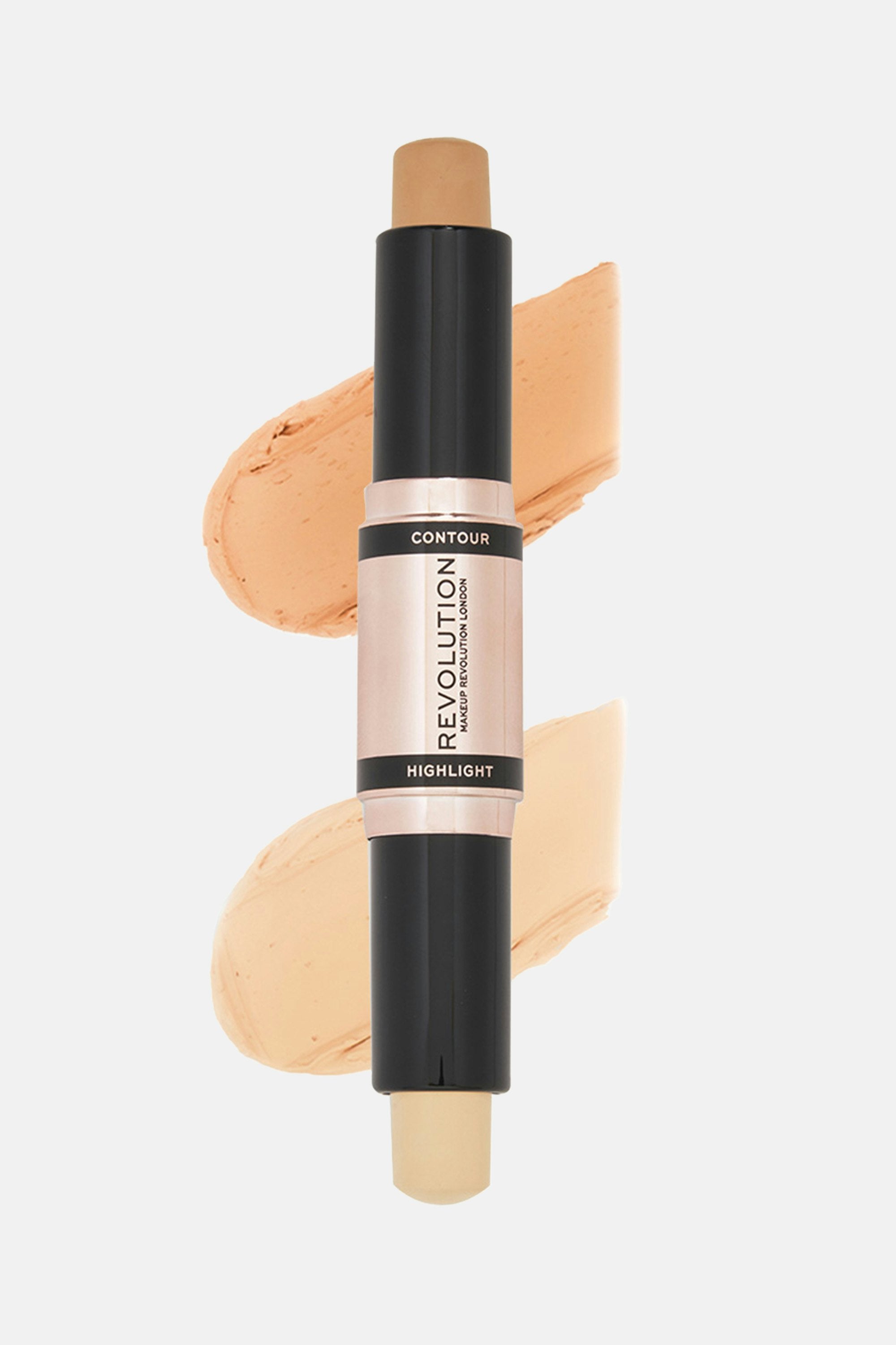 Sculpt, define, and shine with the Makeup Revolution Fast Base Contour Stick! This 2-in-1 magic wand brings you both contour and highlighter, ready to carve those cheekbones or accentuate your gorgeous features with a hint of shimmer. Glide it on effortlessly for a flawless finish that's as smooth as it gets. Apply the contour shade by drawing lines or dots in those strategic areas. Now, let the highlighter work its magic on the high points of your face using the same cool technique. Time to blend, babe! Grab your favorite makeup brush or sponge and blend both shades seamlessly.