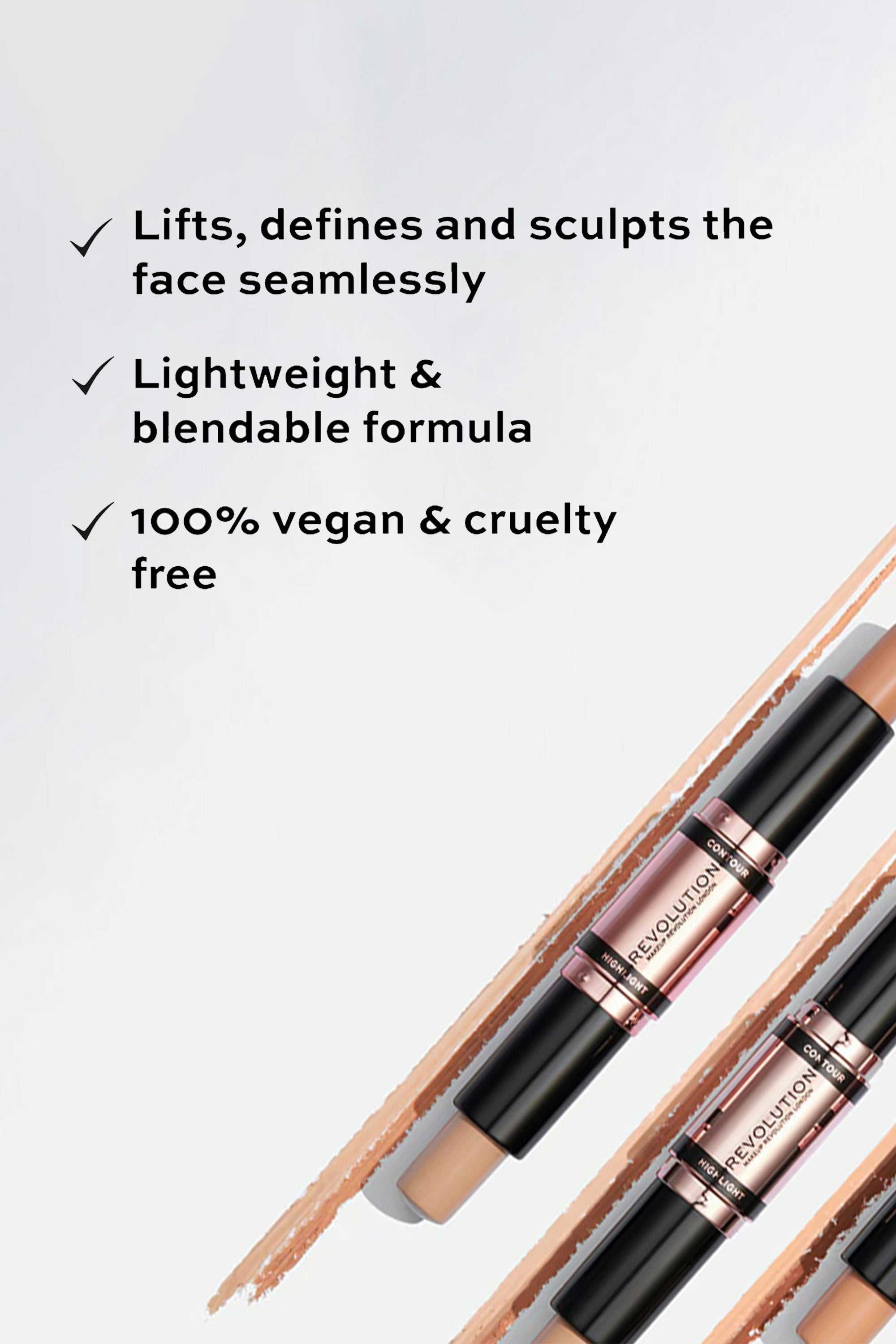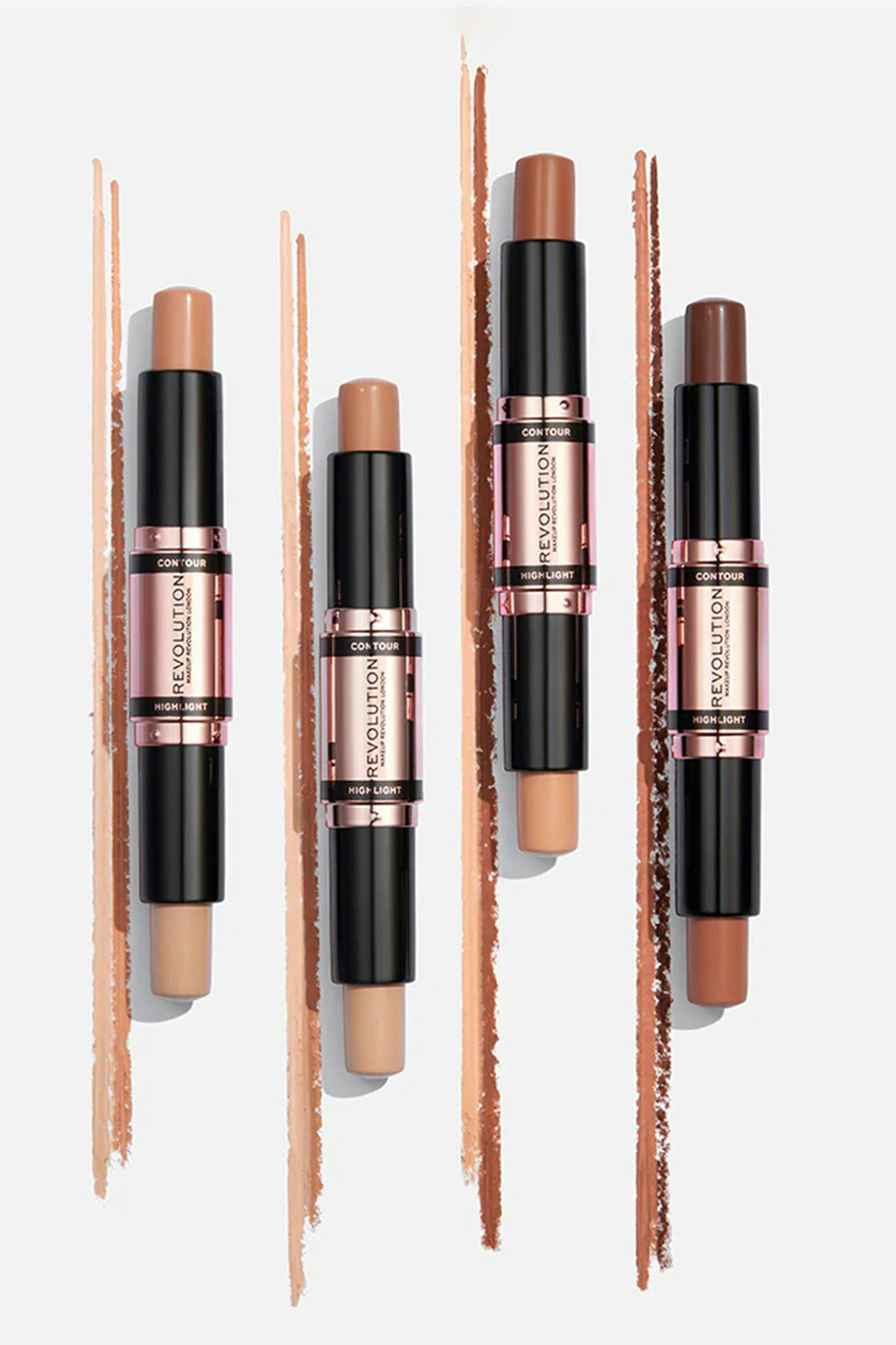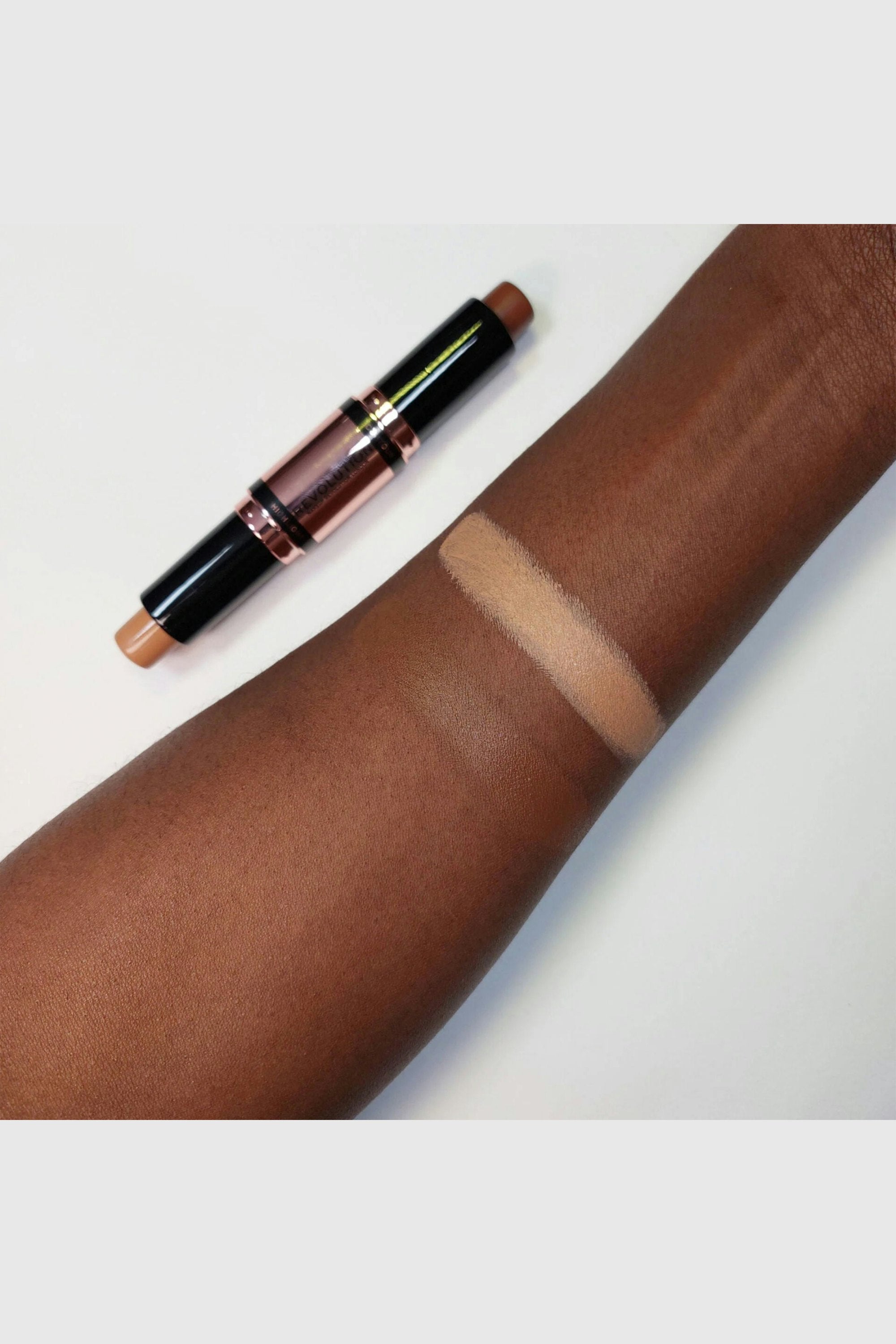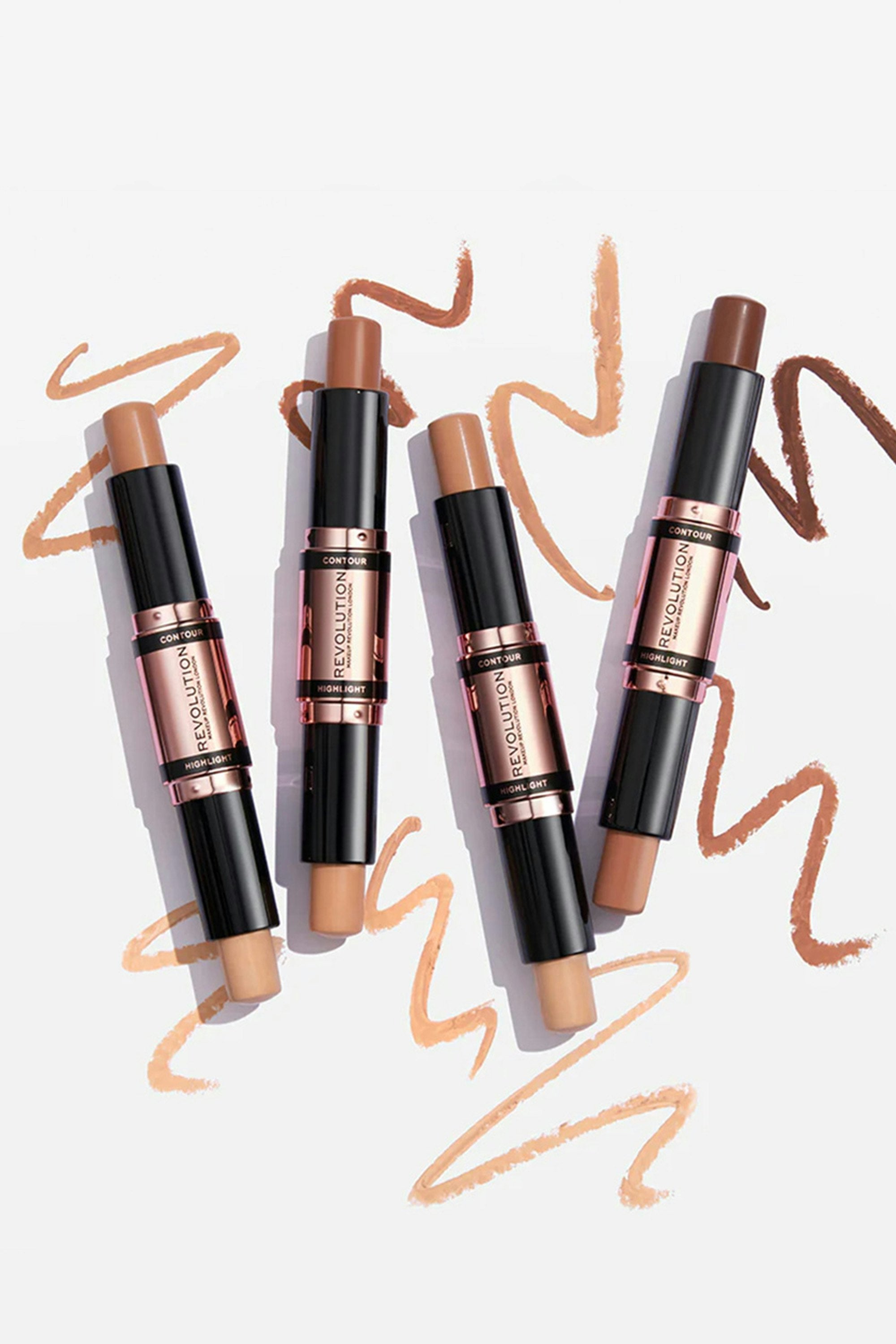 Sculpt, define, and shine with the Makeup Revolution Fast Base Contour Stick! This 2-in-1 magic wand brings you both contour and highlighter, ready to carve those cheekbones or accentuate your gorgeous features with a hint of shimmer. Glide it on effortlessly for a flawless finish that's as smooth as it gets. Apply the contour shade by drawing lines or dots in those strategic areas. Now, let the highlighter work its magic on the high points of your face using the same cool technique. Time to blend, babe! Grab your favorite makeup brush or sponge and blend both shades seamlessly.