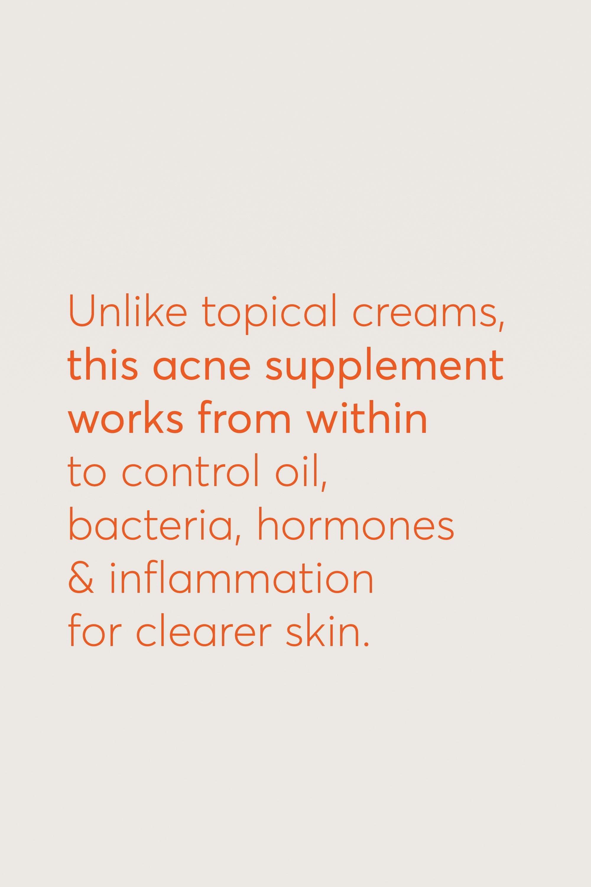 Formulated to support clearer skin from within by addressing the root causes of acne. Enriched with skin-friendly vitamins, minerals, and herbal extracts, they help regulate oil production, reduce inflammation, and promote faster healing of breakouts. With consistent use, they work to minimize future flare-ups and improve overall skin health. Take the capsule whole with a glass of water, (or as per your physician’s directions).