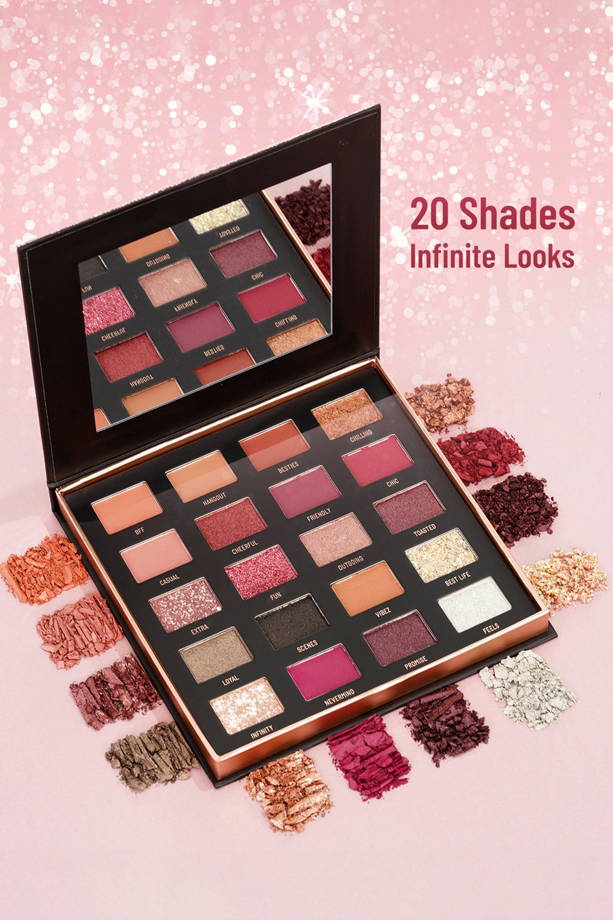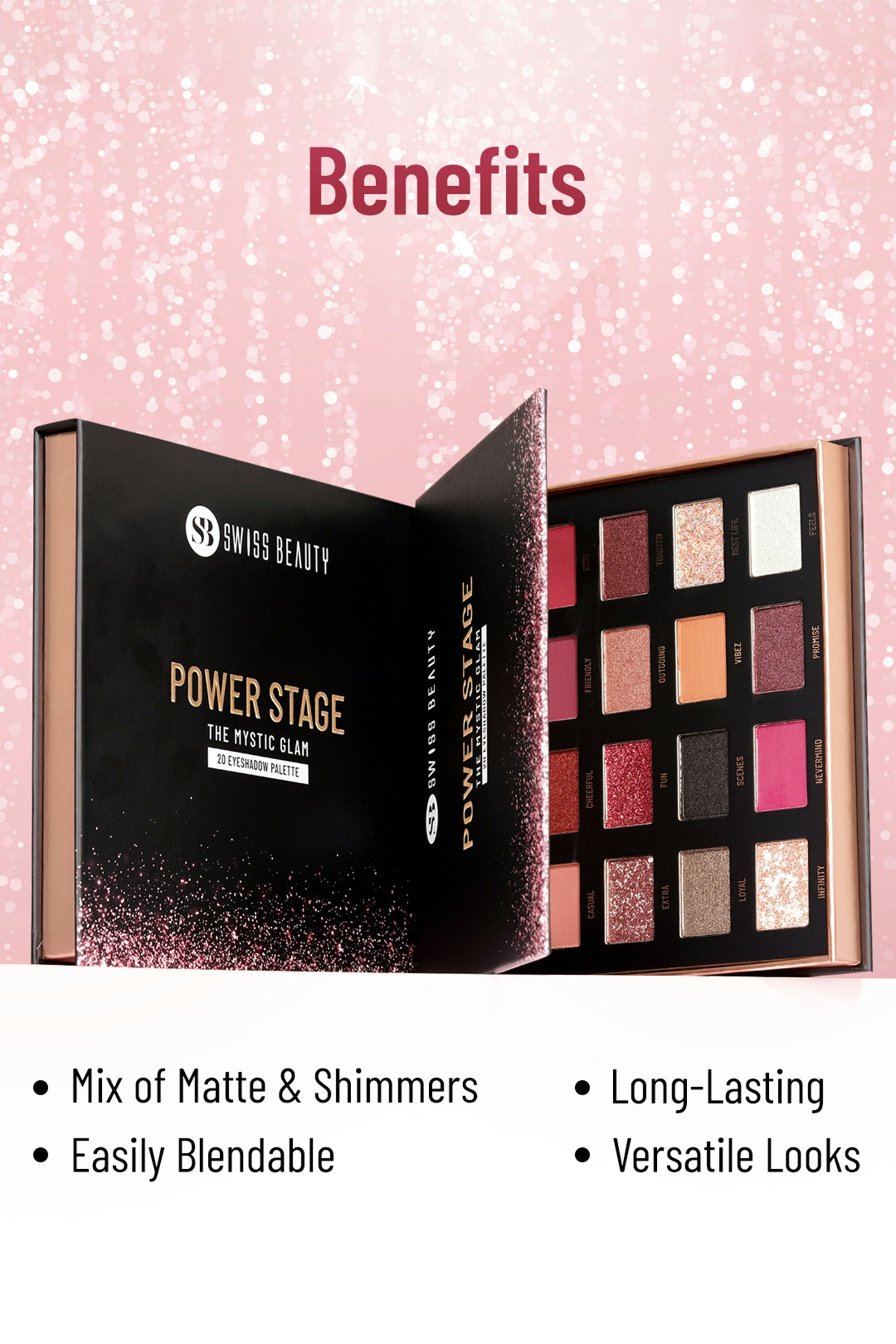 Get ready to elevate your eye game with the Power Stage Eyeshadow Palette – a total game-changer with 20 bomb-ass shades! This palette is like a treasure chest full of mystical colors that'll take your look to the next level. With a mix of mattes and shimmers, it's got you covered for any occasion, from chill day vibes to lit nighttime glam. Blend darker shades at the crease, then pop lighter hues on the brow bone and inner corners. Finish with a touch of shimmer for extra glam!