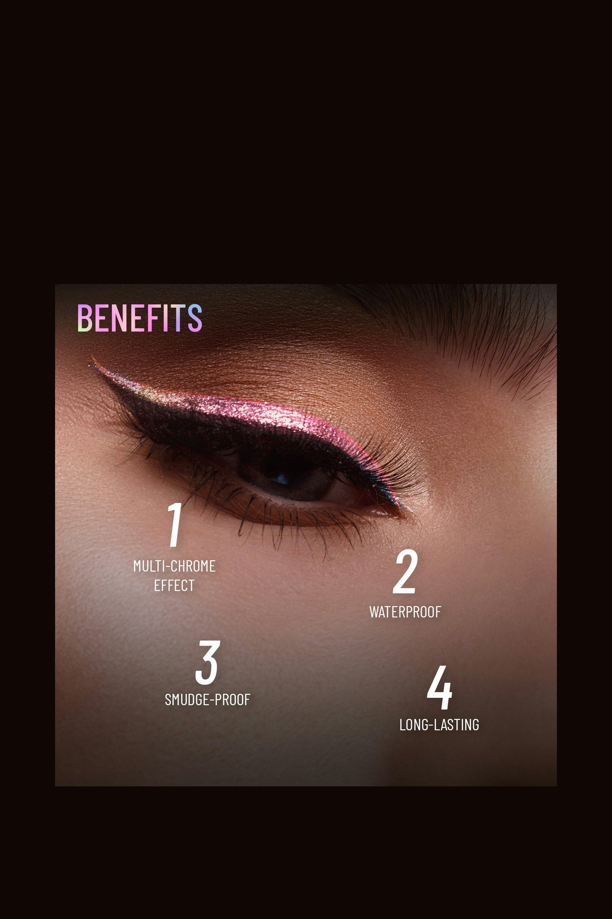 The ultimate game-changer for your gaze! With its mesmerizing color-changing effect, this eyeliner promises to take your look to intergalactic levels. Prepare to dazzle as its intense hues adorn your lids, creating a jaw-dropping impact that stays put, rain or shine. Twist up the eyeliner and glide it along your upper lash line for a defined look, or use it across the entire eyelid for a bold statement.