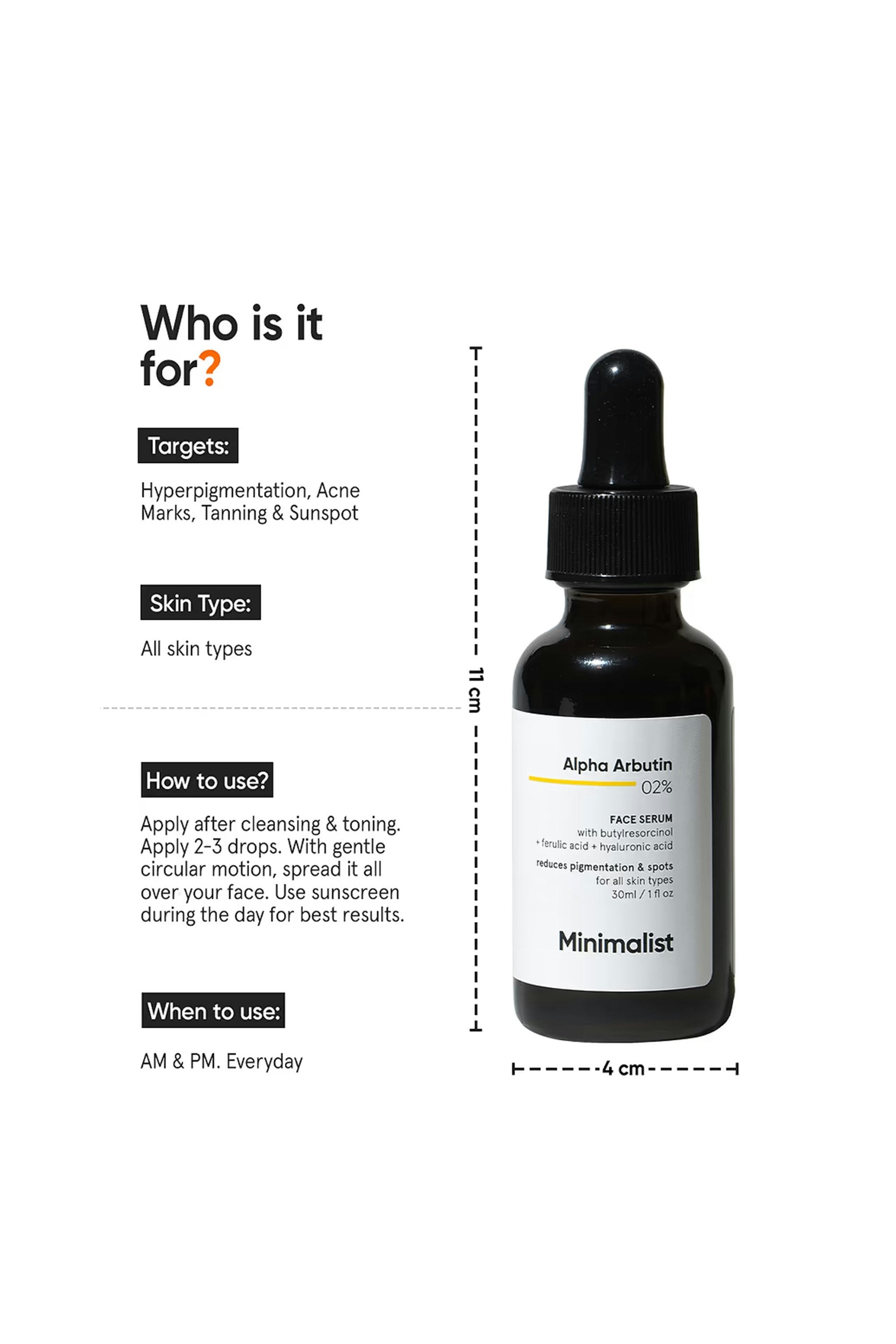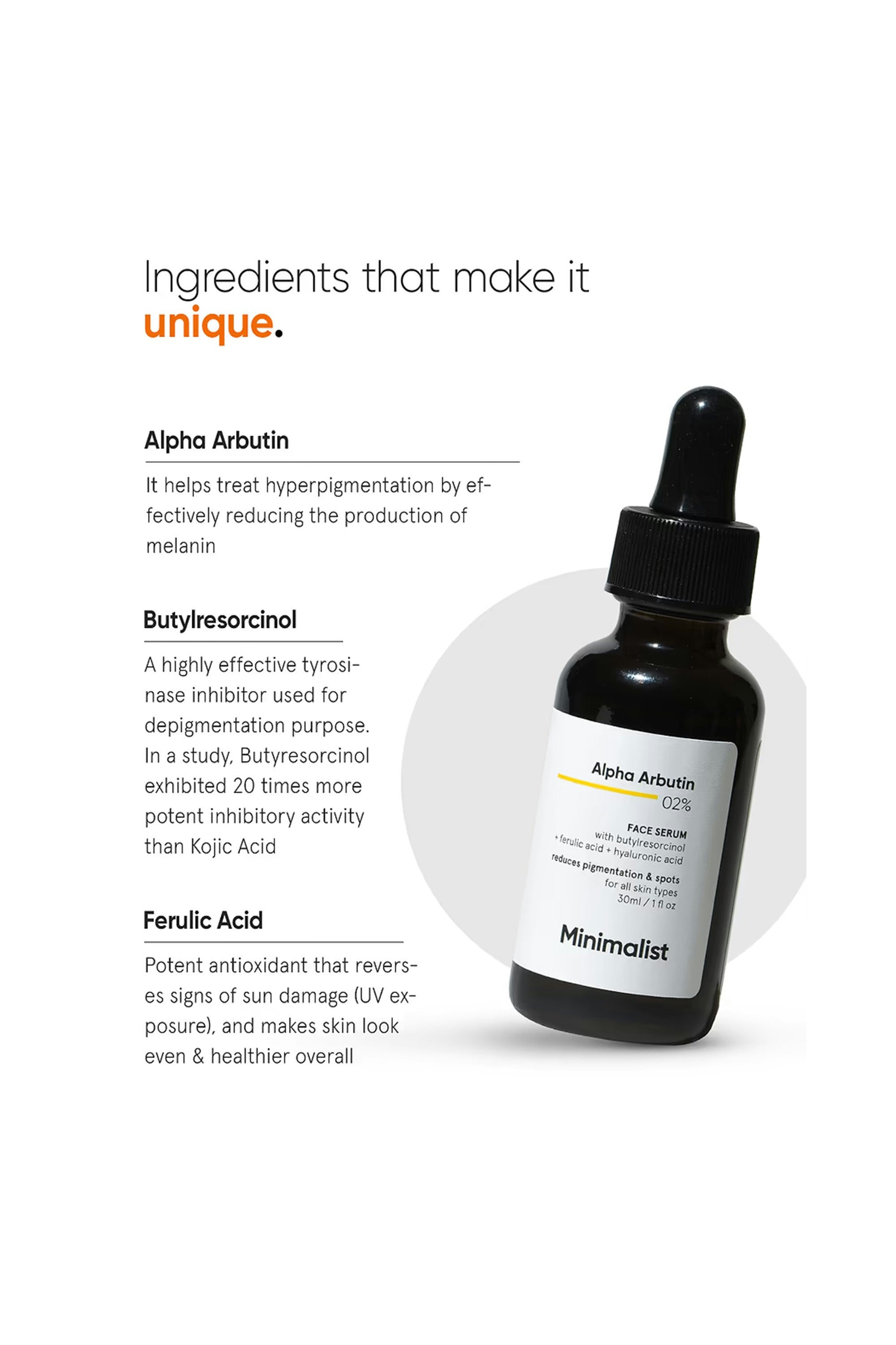 Lactic Acid (AHA), Arbutin, Hyaluronic Acid, and Ferulic Acid