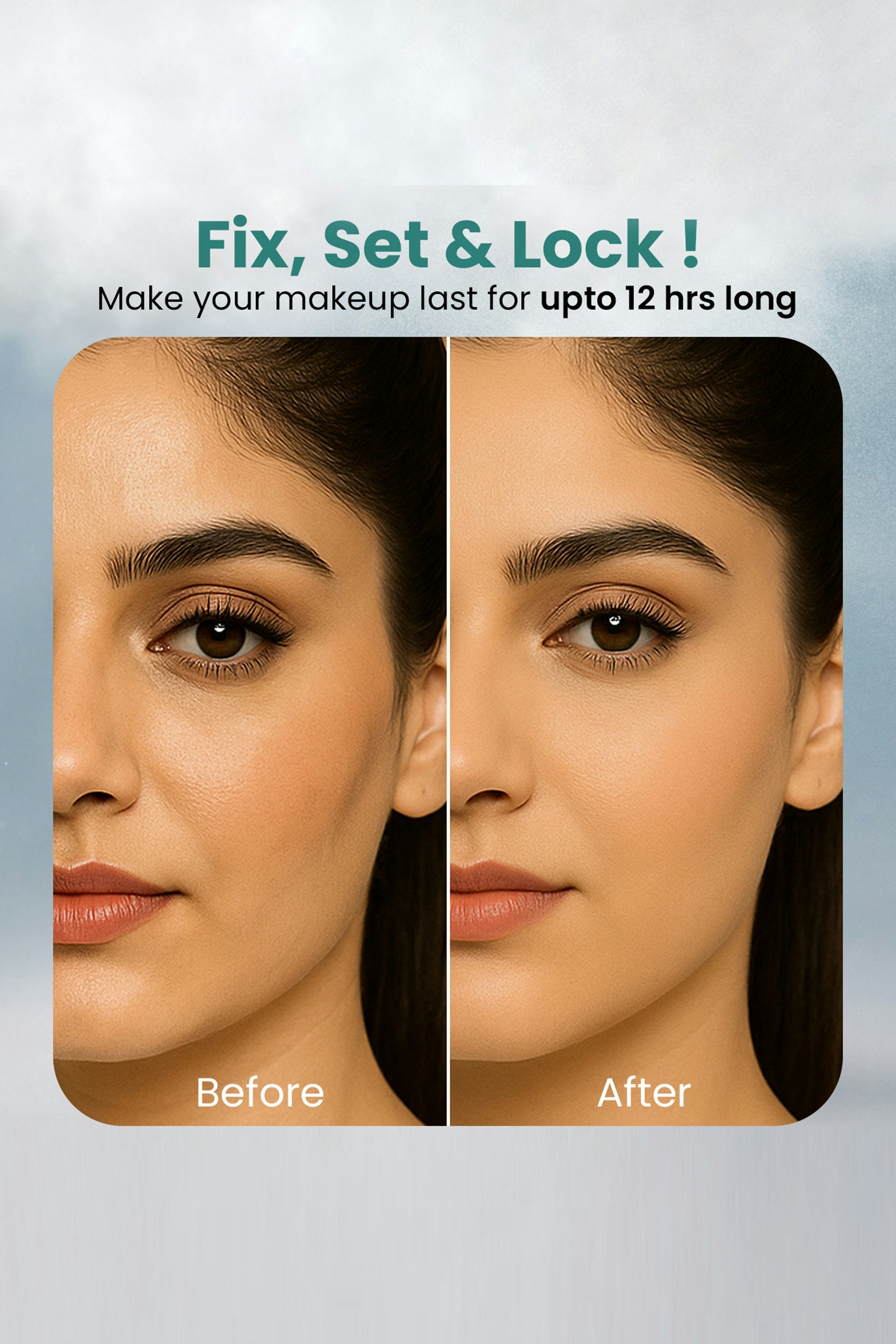 A mini hydrating, lightweight makeup fixer that locks in your look while keeping skin soft and glowing. Enriched with hyaluronic acid, vitamin E, moringa, caffeine, rosemary, and chamomile, it nourishes, soothes, and protects your skin while extending makeup wear. After finishing your makeup, hold the fixer at arm's length and mist evenly over your face. Let it dry naturally, no rubbing needed, for a refreshed, long-lasting finish.