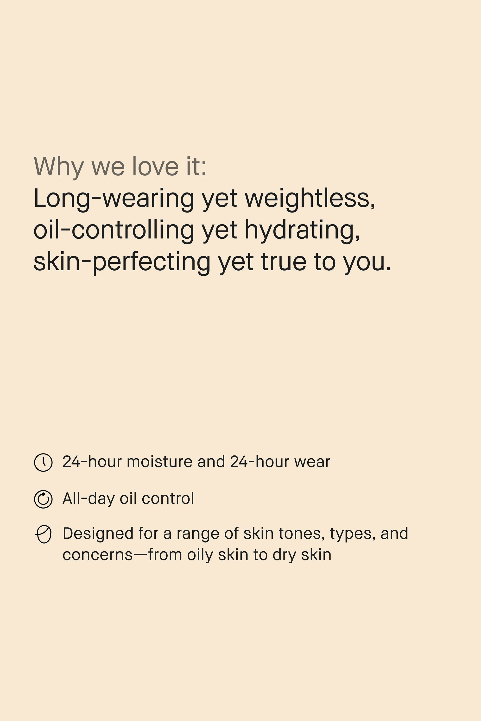 A creamy liquid foundation that makes your skin look like... skin, but better. The long-lasting formula feels feather light on your skin and provides a medium coverage. More creamy than runny, it sits comfortably and mattifies without looking dry or cakey, making it ideal for combination and oily skin. The only downside? It dries really fast, which makes application a tad tricky. If you want to get the most out of your foundation, work in sections rather than across your full face. Start with a little bit of product and dot it all over your face. Dab and blend with a makeup sponge till it dries down. Avoid using a brush as the foundation may appear streaky.