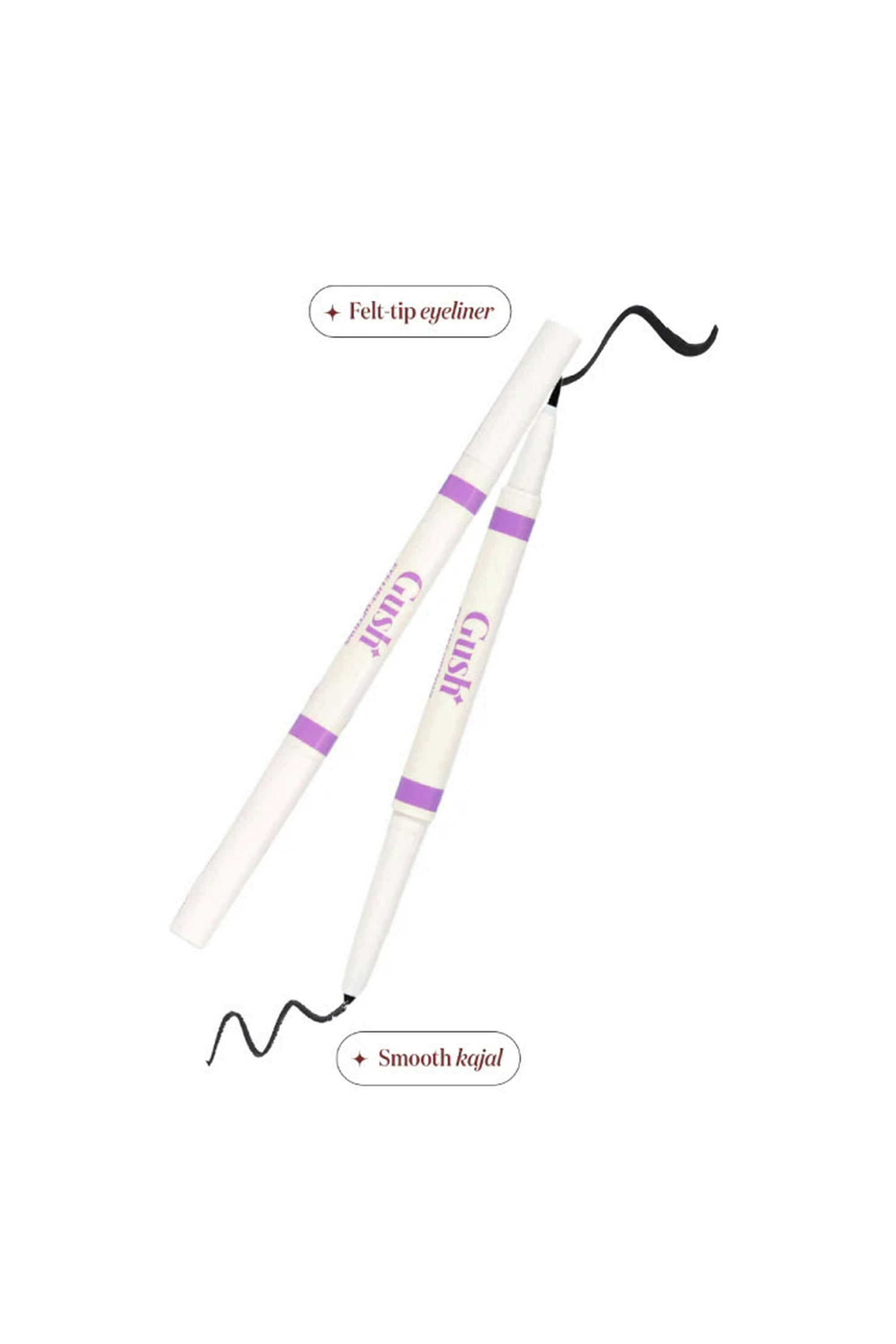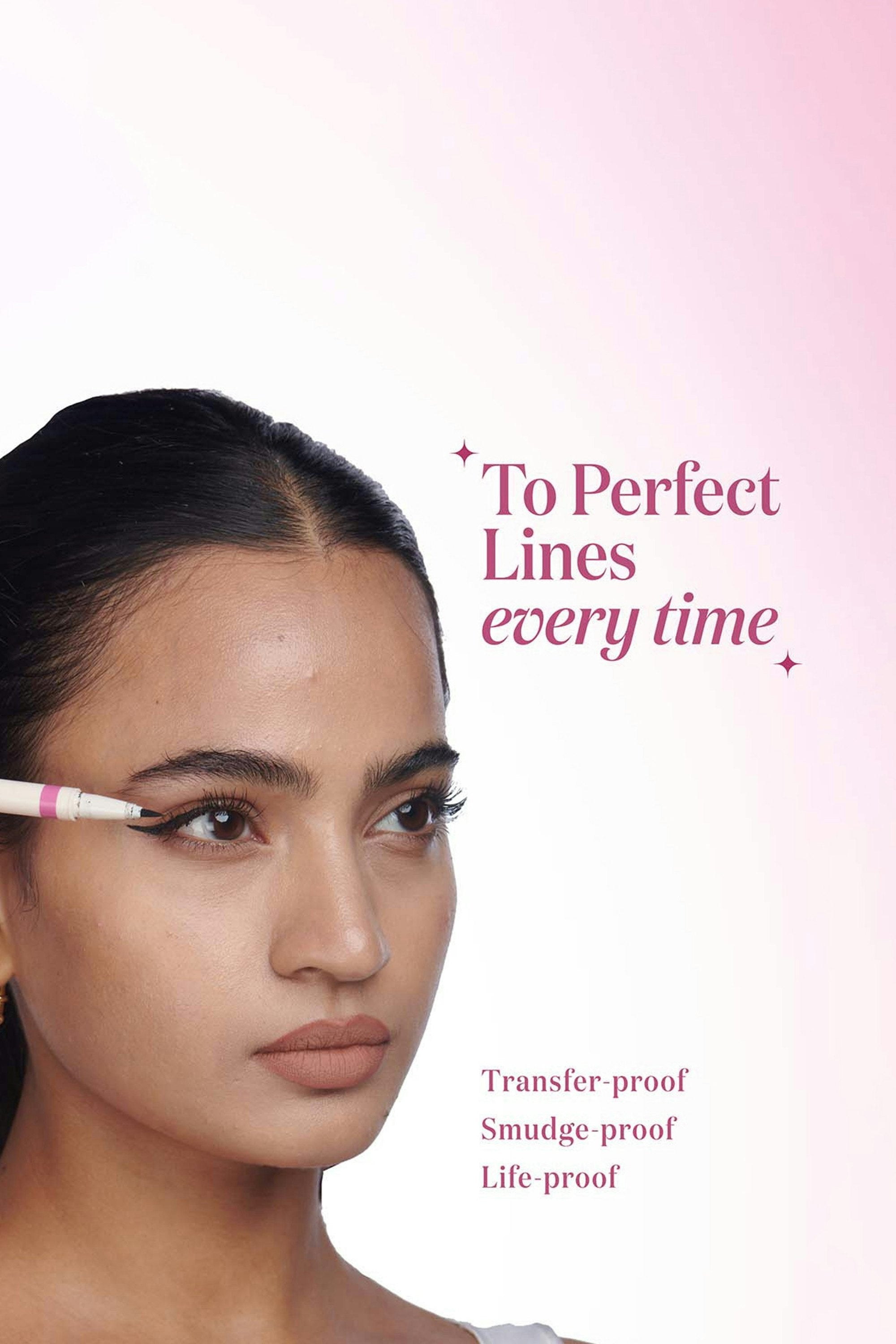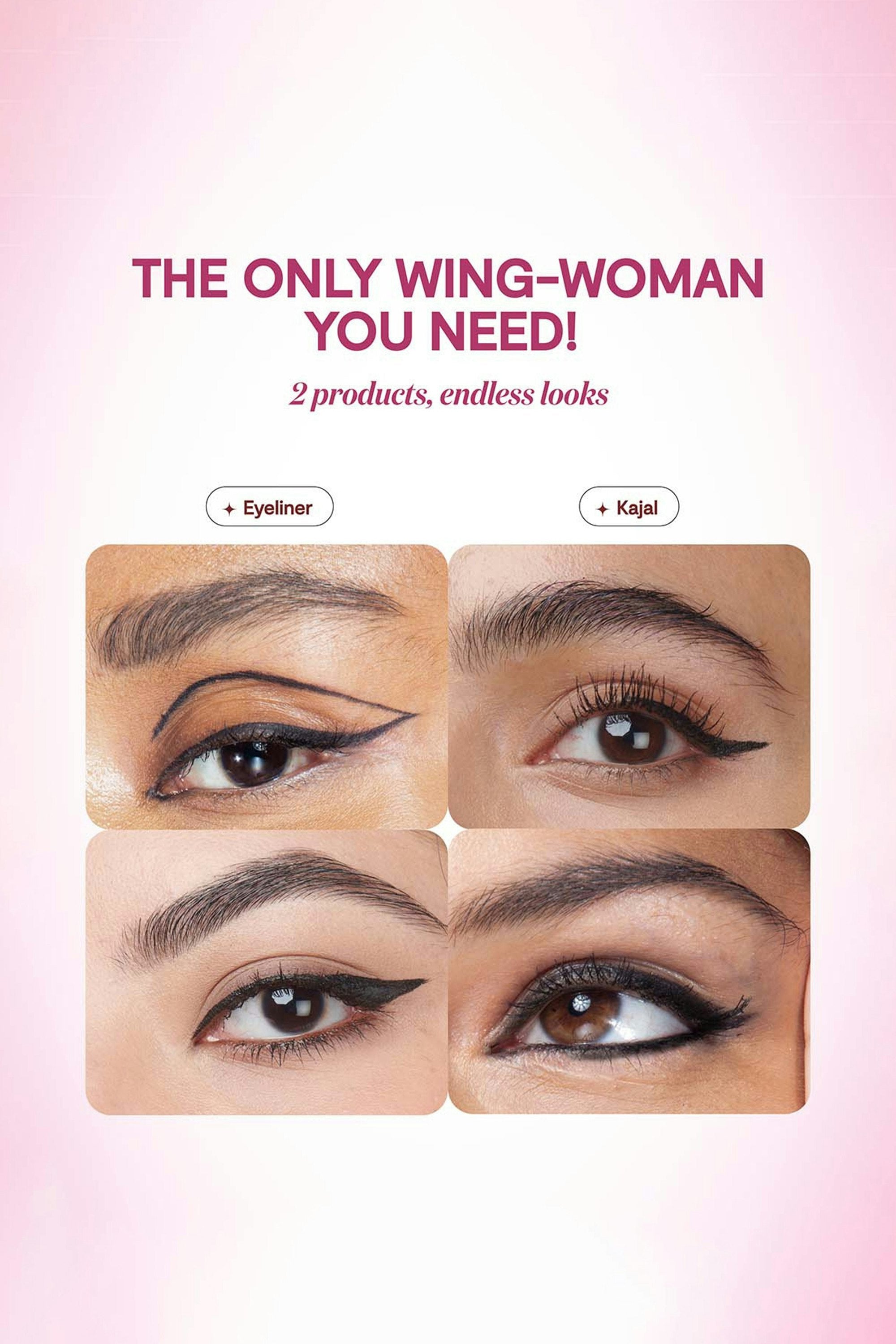A power duo you just can't resist! This dual-ended felt tip liner and kajal gives you the best of both worlds and the freedom to get playful and creative with your eye looks. Whether you go for a smokey eye look, siren eyes, or a graphic eye look, all you need is just this one liner. For girls who love bold eyeliners but have monolids, draw your wing floating above your lash line for a perfectly dramatic and sexy wing.