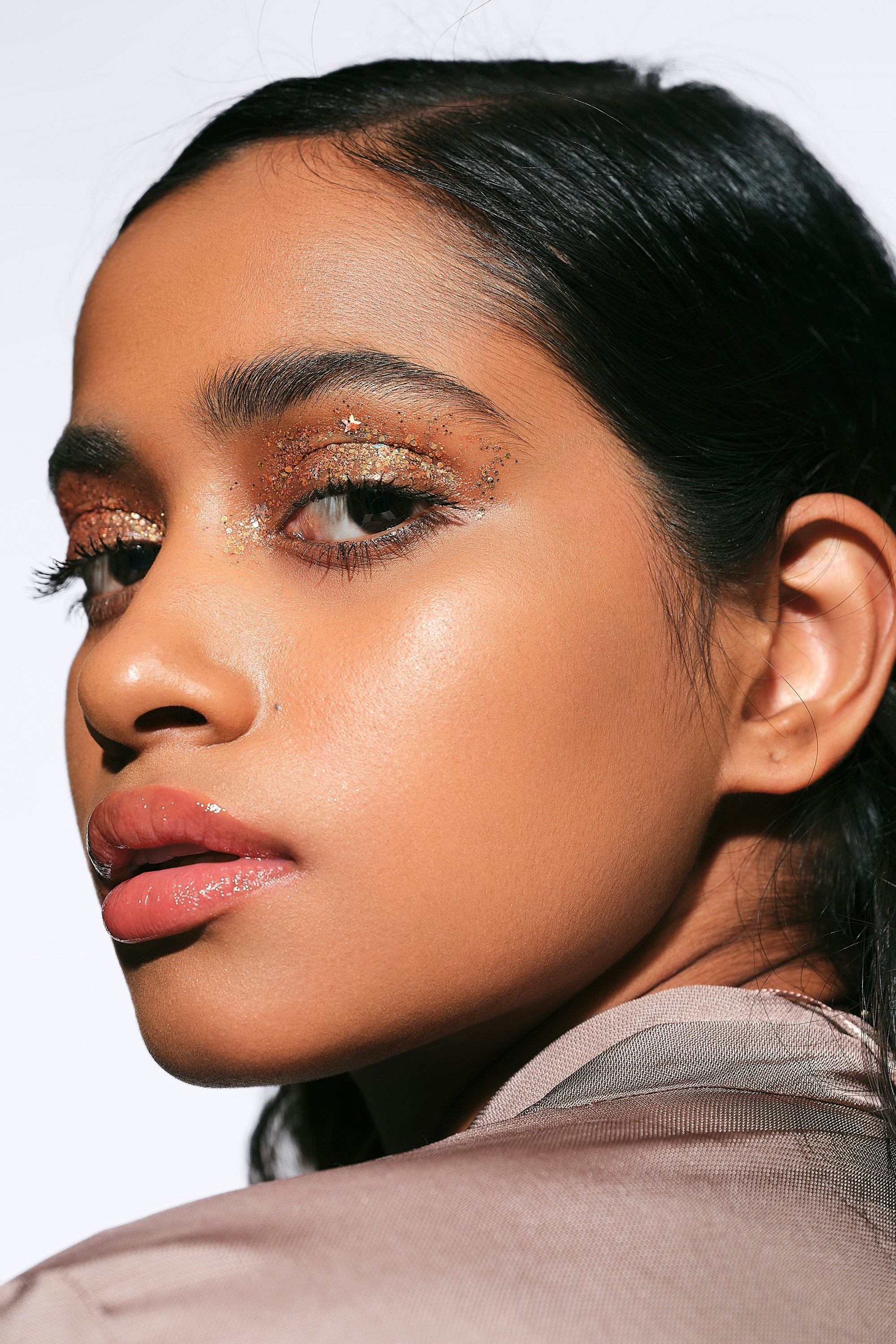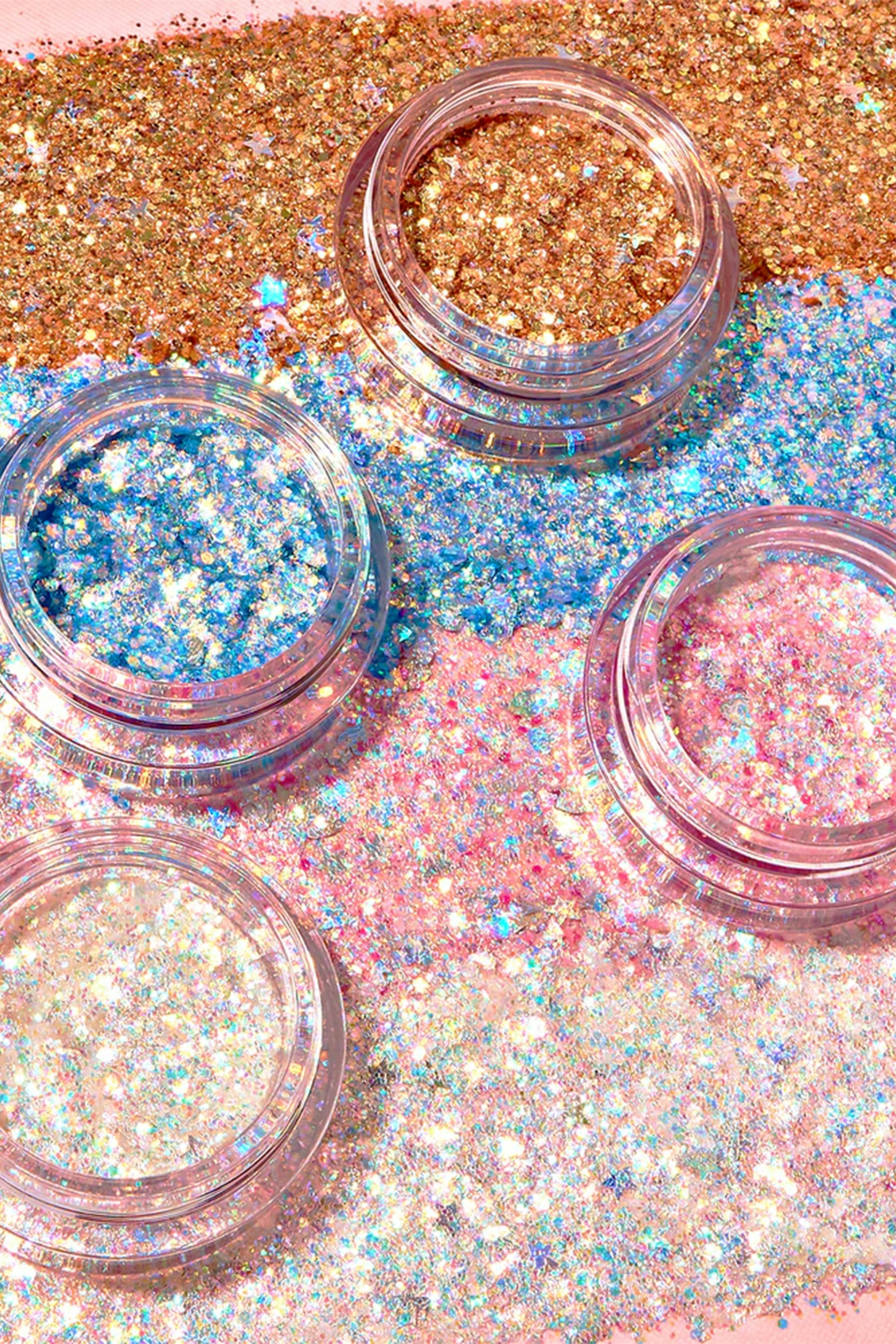 The perfect product to amp up any look and turn all the spotlights on you! Explore and experiment with this chunky glitter explosion by rubbing over your body, highlighting your face, and applying on your hair as well! Gently rub over your body, tap with fingers on your face, and rub into your hair like a gel. Since it is a chunky glitter- we recommend keeping it away from sensitive areas like lash line.