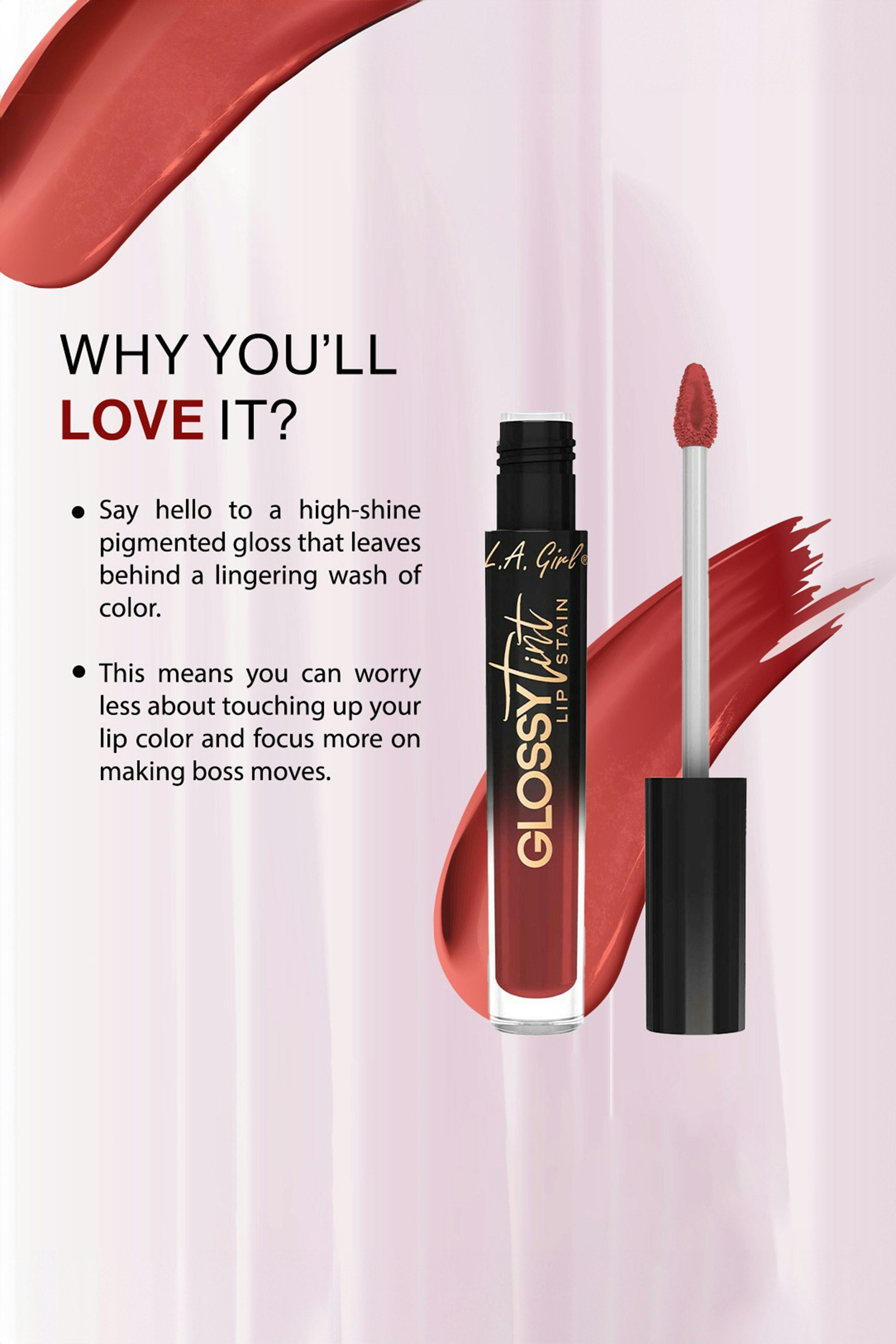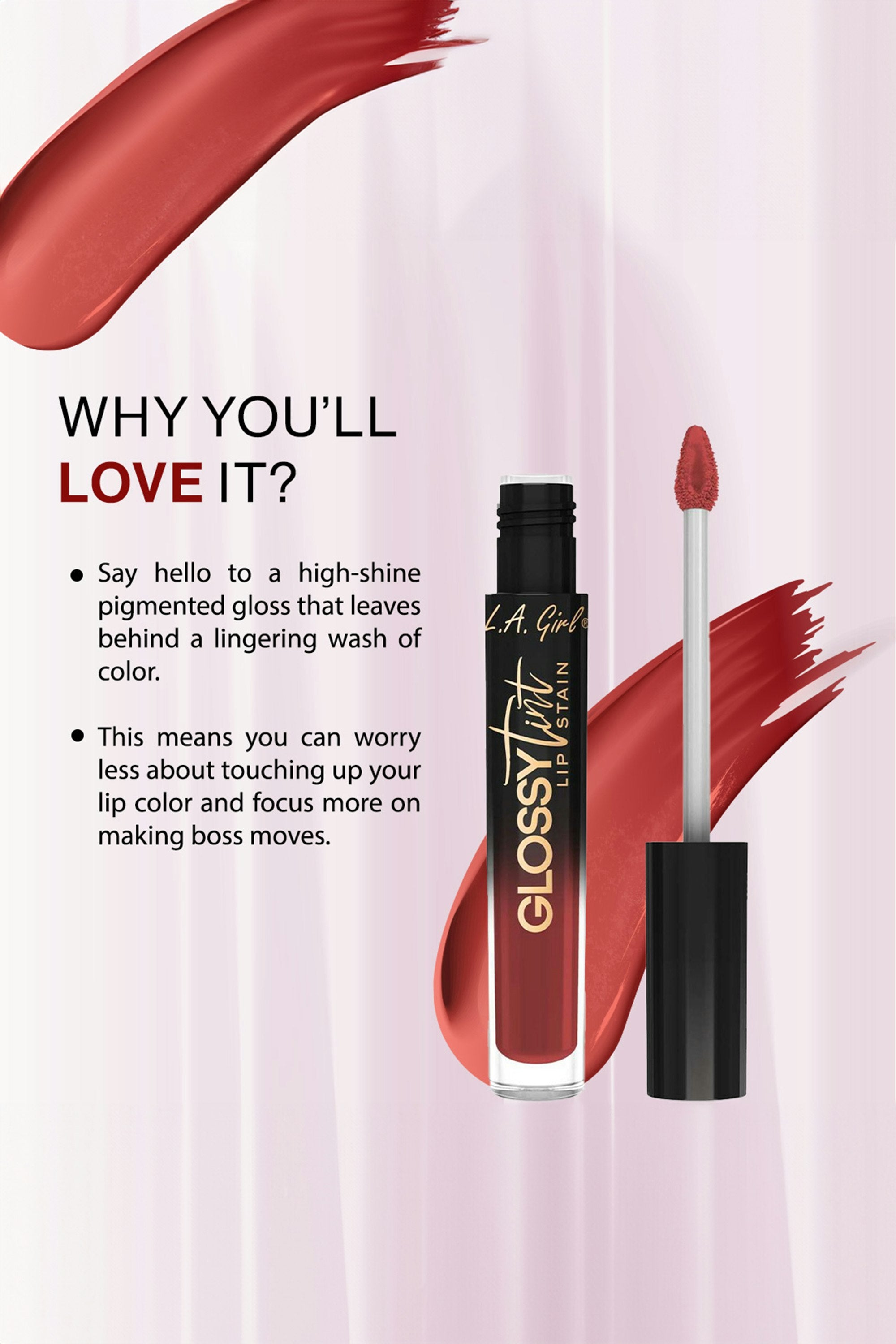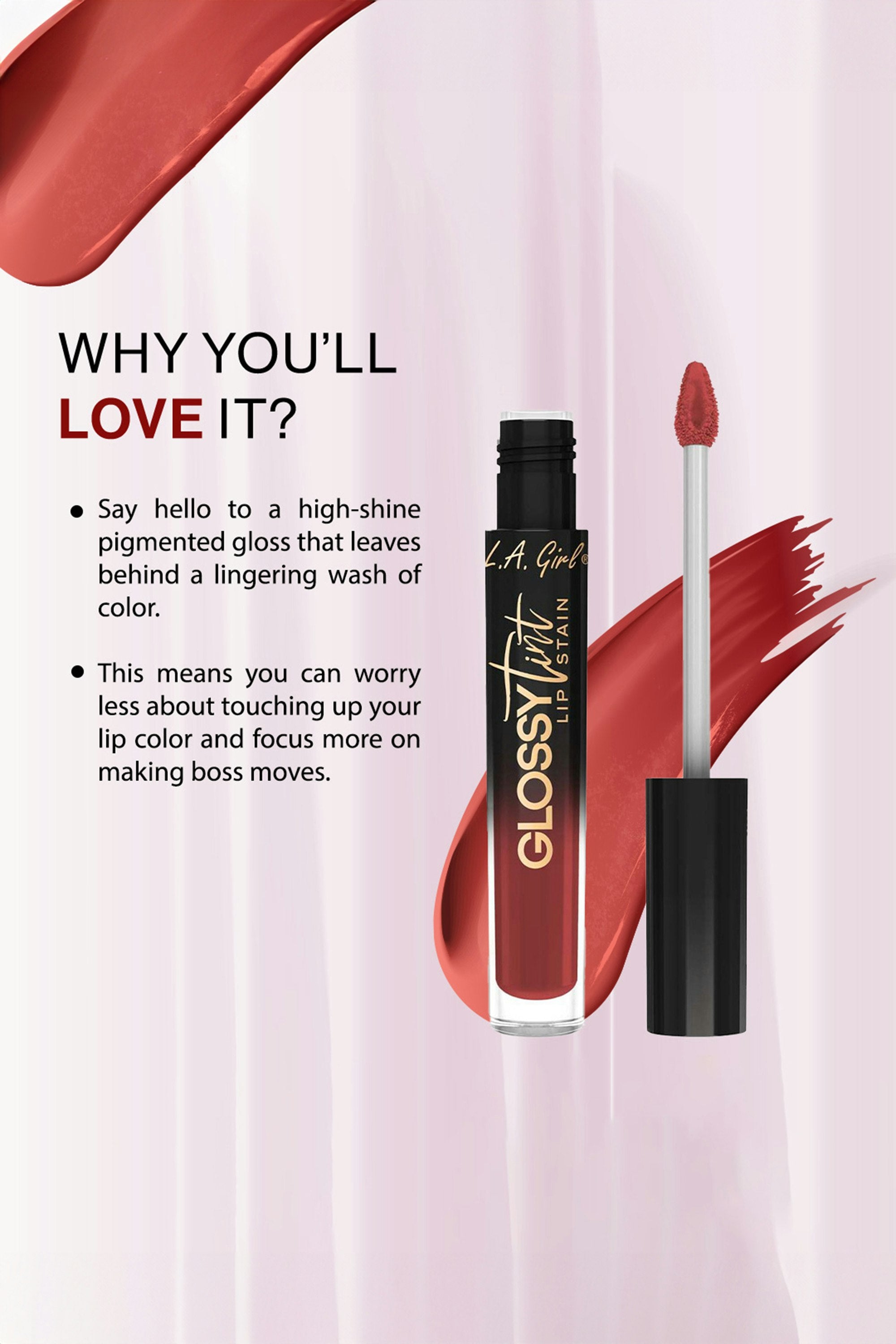 Say goodbye to commitment issues. This high-shine lip gloss stains lips with lasting color, so you can skip the touch-ups and focus on making boss moves. Non-drying, glossy finish—color that stays long after the gloss is gone. Apply a thin layer with the precise doe-foot wand for a mess-free, even finish. Blot for a natural, long-lasting stain or keep it glossy.
