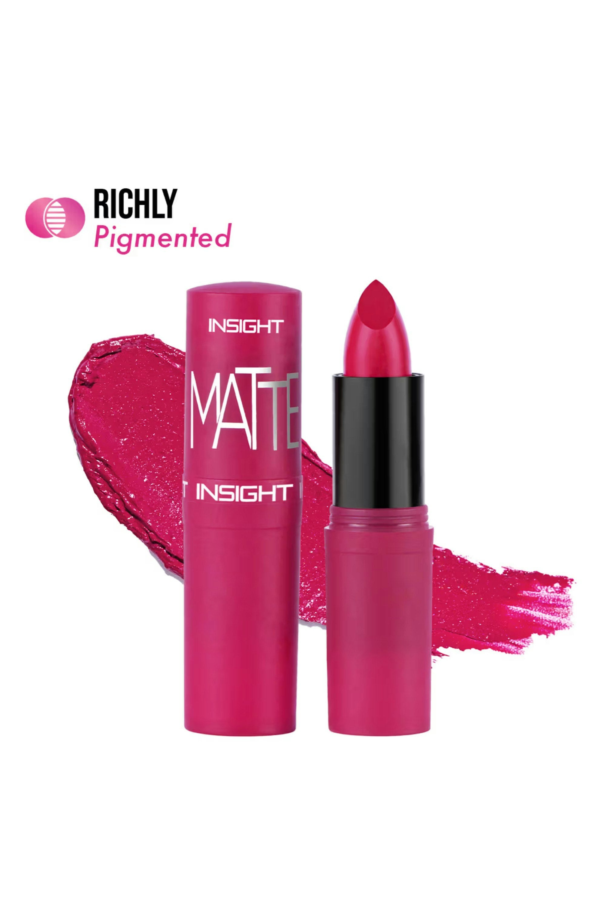 Insight Always On Matte Lipstick is your go-to for bold, lasting lips. With a single stroke, it delivers rich color payoff in a soft matte finish. The formula glides flawlessly, feels weightless, and stays put all day without drying out your lips. Start by outlining your lips with the lipstick, then fill in the center for full coverage. For a more defined look, pair with a matching lip liner. Reapply as needed for all-day wear.