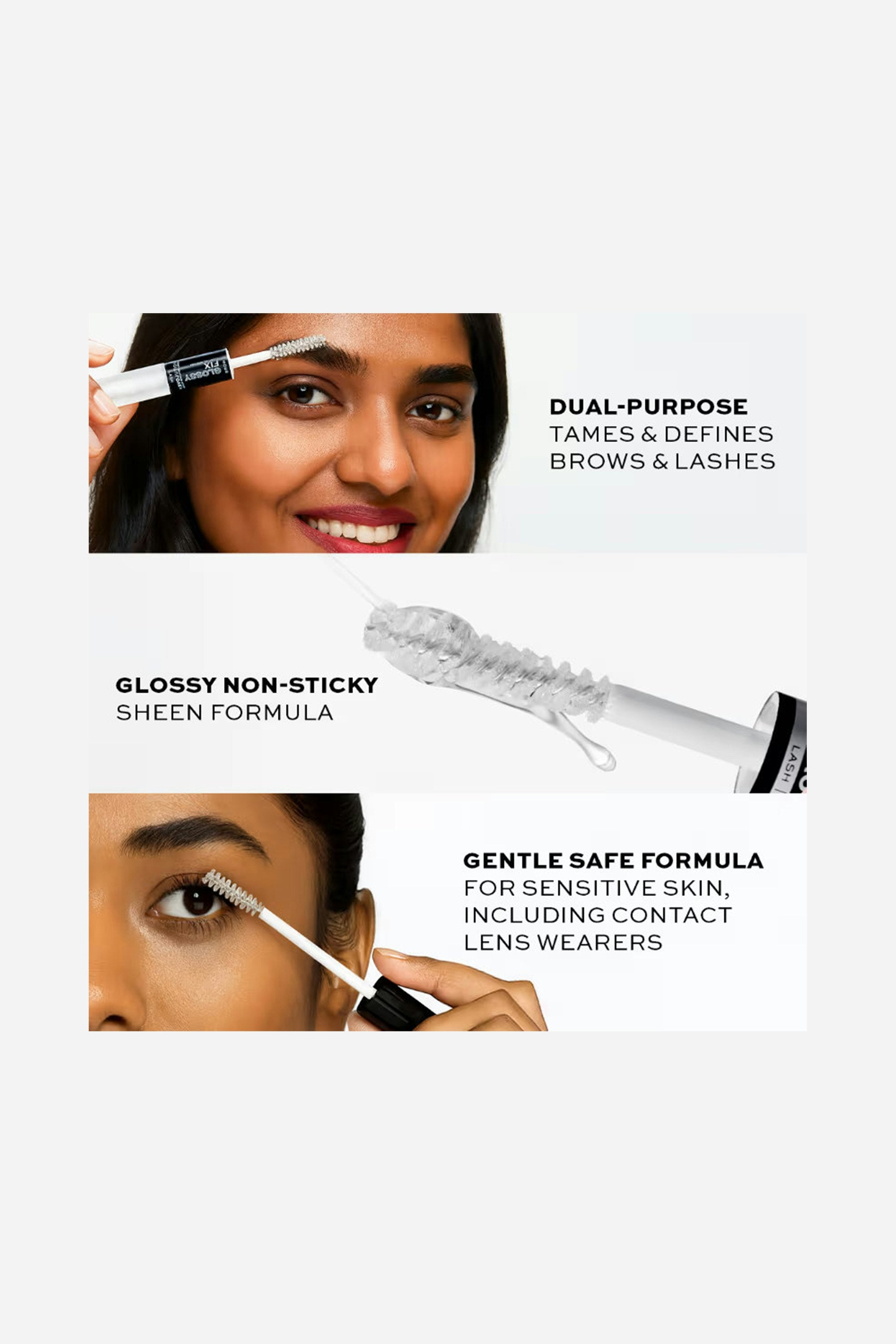 The Revolution Glossy Fix Clear Gel & Mascara is the perfect product to ace the clean girl makeup look when you're on-the-go. With lashes so healthy-looking and brows so defined, you're sure to make a whole lot of heads turn. You can apply the clear brow gel to give your natural brows a lift and shape them. And, glide the clear mascara across your lashes for a glossy finish.