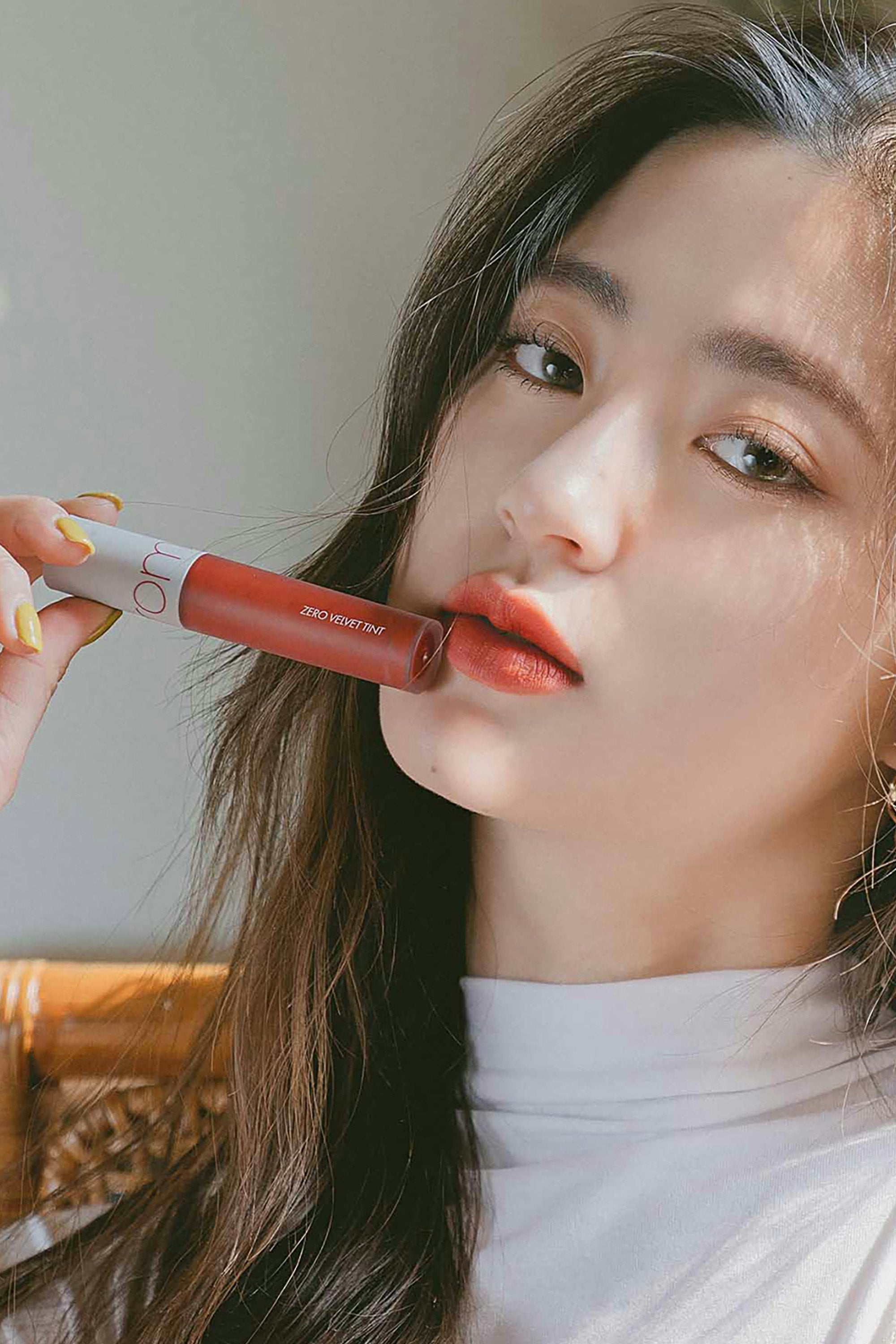 Elevate your lip game with Rom&nd's Zero Velvet Tints – your key to that dreamy "my lips but better" look! This matte lip tint boasts a blurring effect and a velvet texture for that editorial vibe. The creamy formula not only adds a touch of moisture but also creates Rom&nd's signature blurring effect. Layer up for high-intensity glam with rich color payoff. Time to unleash your lip fantasies! Grab the applicator wand and begin at the inner part of your lips, applying a light layer of tint evenly. Once dry, layer on more light coats until you reach that perfect color intensity.