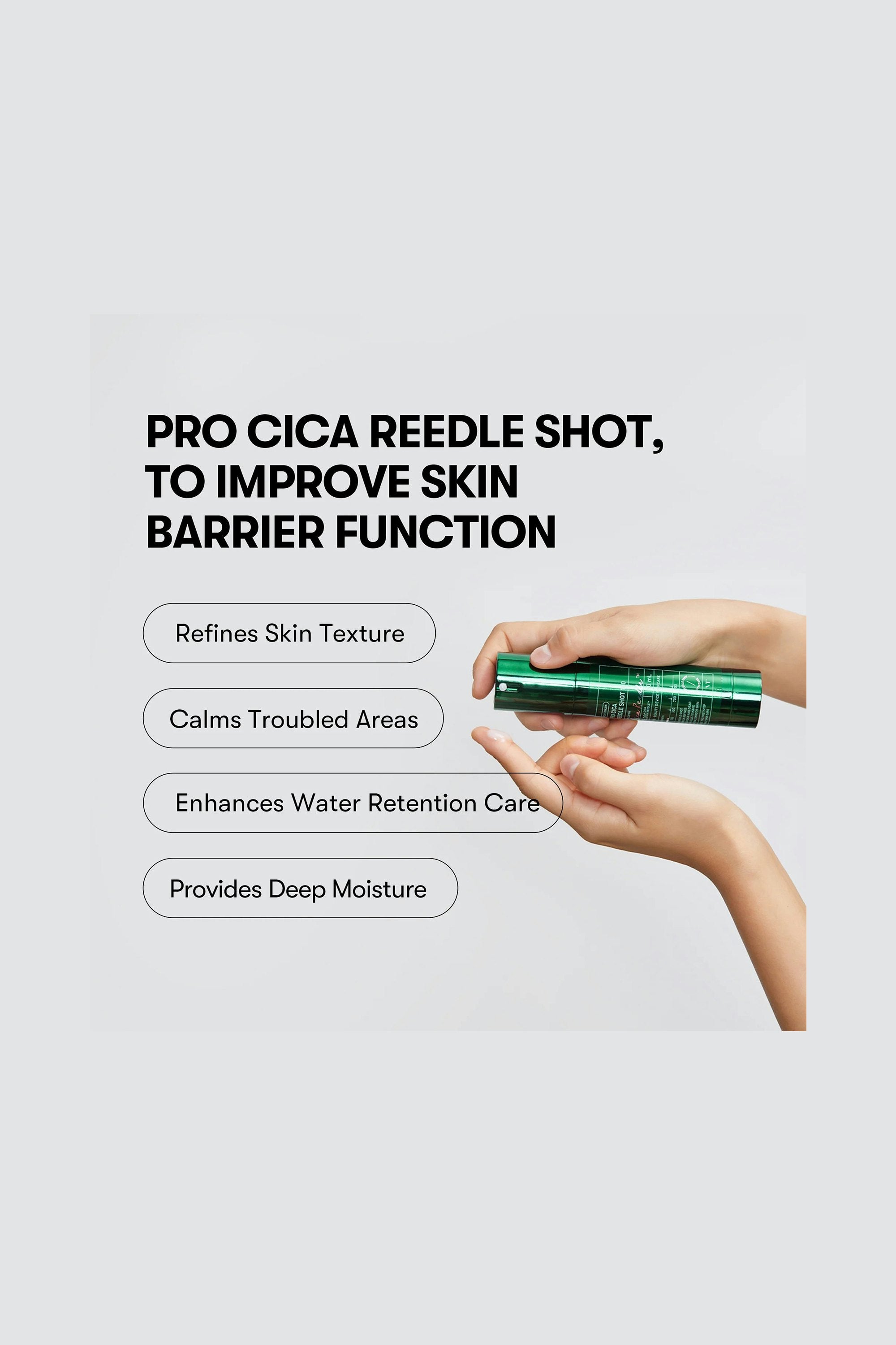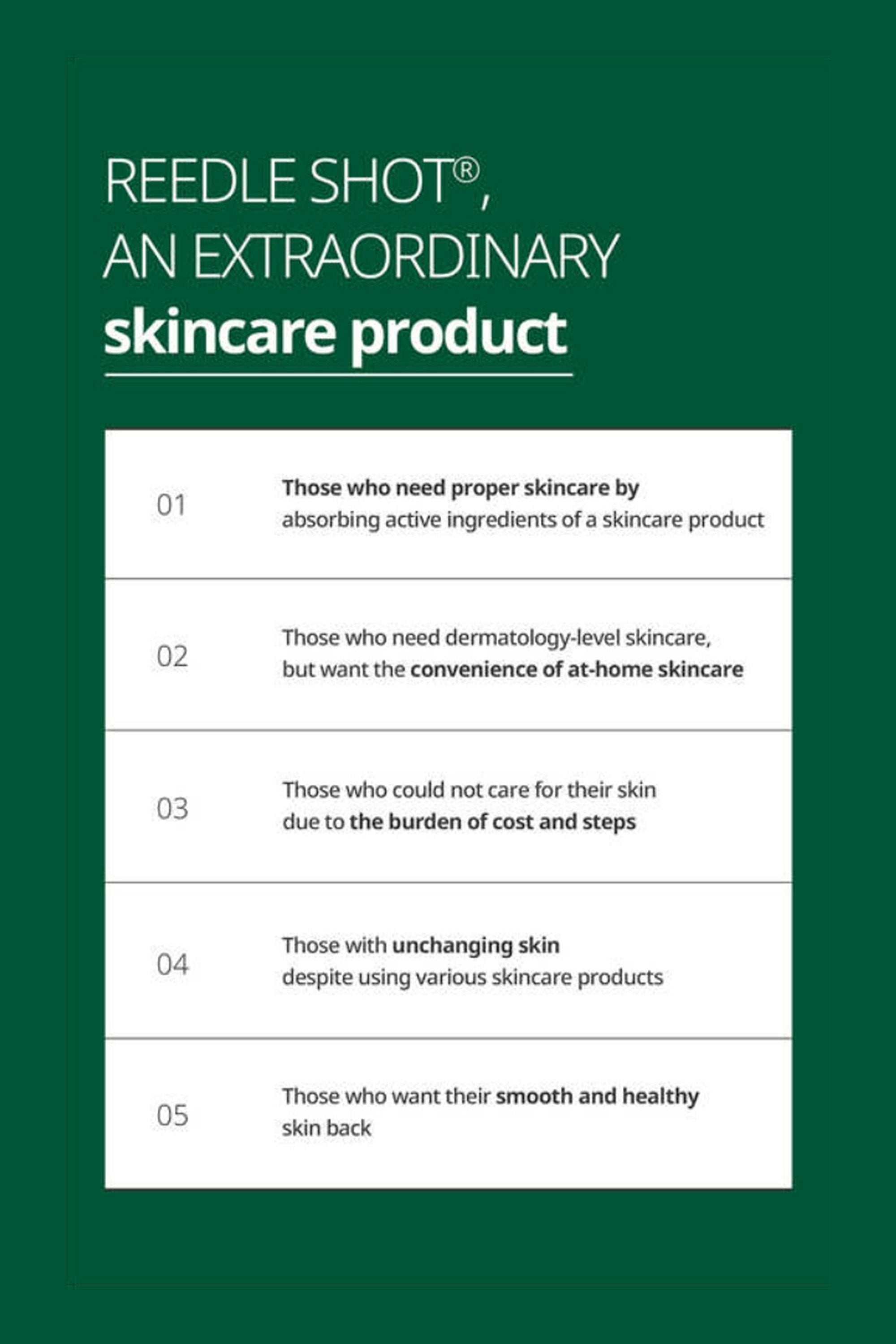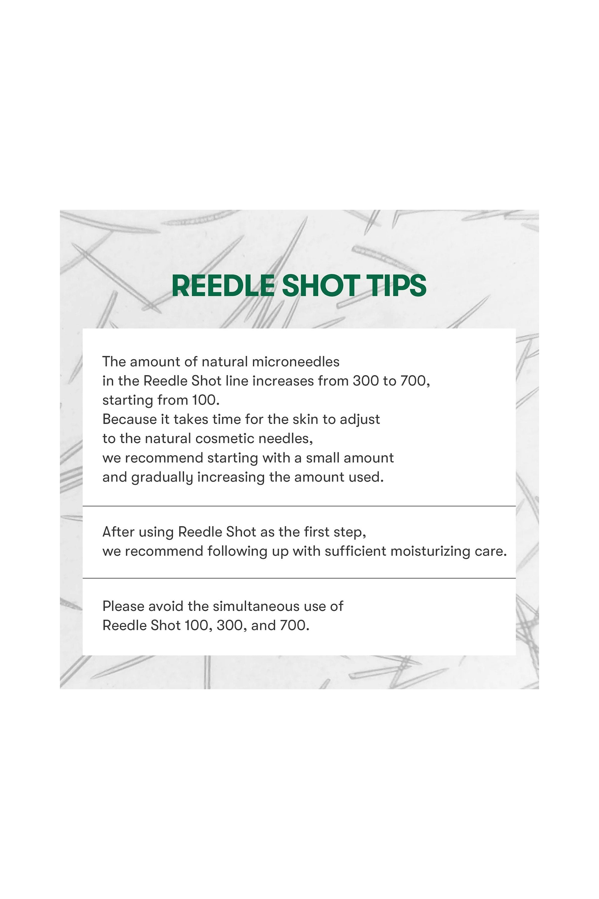A gentle entry into reedle care powered by cica. Think of it as a calming boost that works beneath the surface, helping recharge skin when it feels stressed. It’s subtle but steady, great for building tolerance without overdoing it Apply evenly on clean skin and massage until absorbed. Gentle enough for daily use, both morning and night. Always follow with hydration and avoid layering with other reedle shots in the same routine