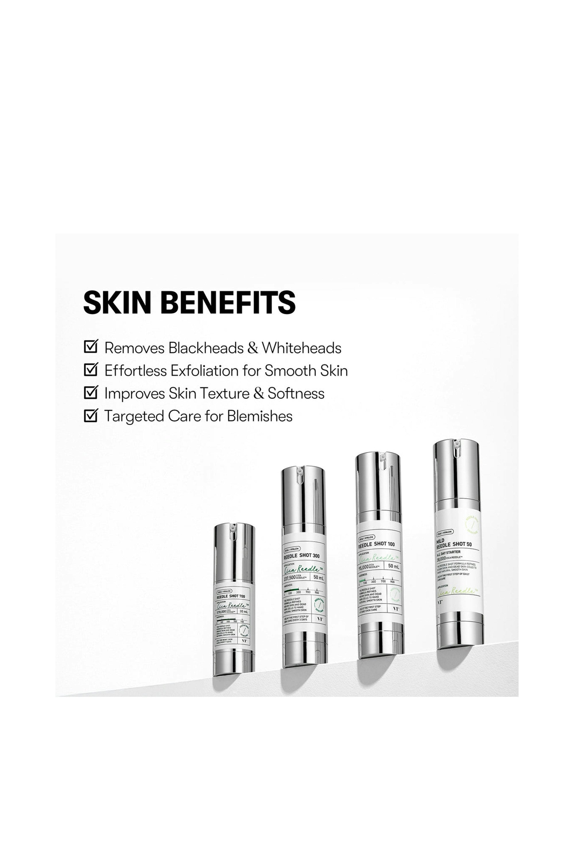 Elevate your skincare with VT Cosmetics Reedle Shot 700 Essence—a powerful anti-aging formula using micro-needle technology to deeply deliver active ingredients. It boosts collagen, smooths fine lines, and enhances elasticity for firmer, more radiant skin—ideal for mature and aging skin. If you are new to exfoliation, try the 100 or 300 version instead. Patch test before use. Cleanse your face and apply toner to prep the skin. Gently pat 1–2 pumps of essence onto areas with fine lines or wrinkles—avoid rubbing. Let it absorb fully, then follow with your moisturizer.