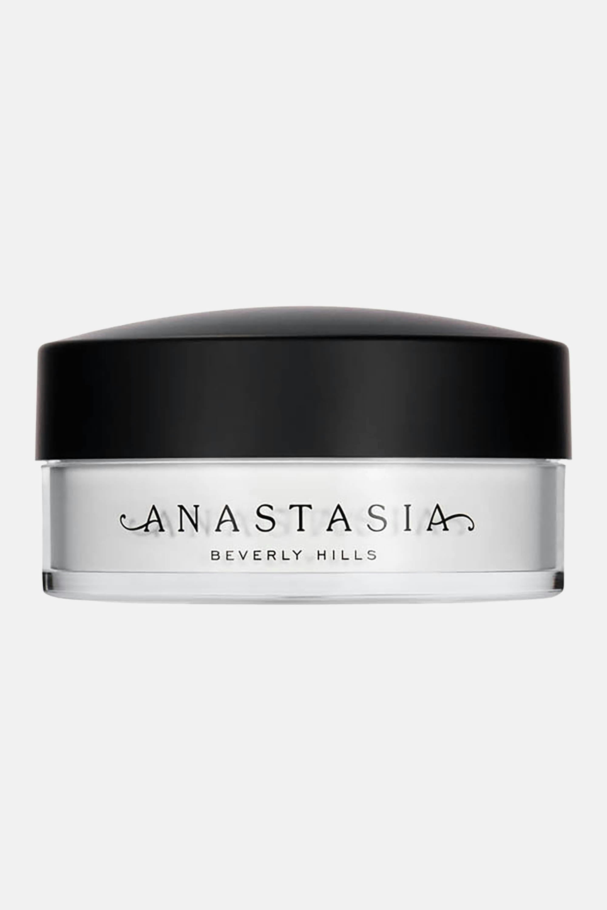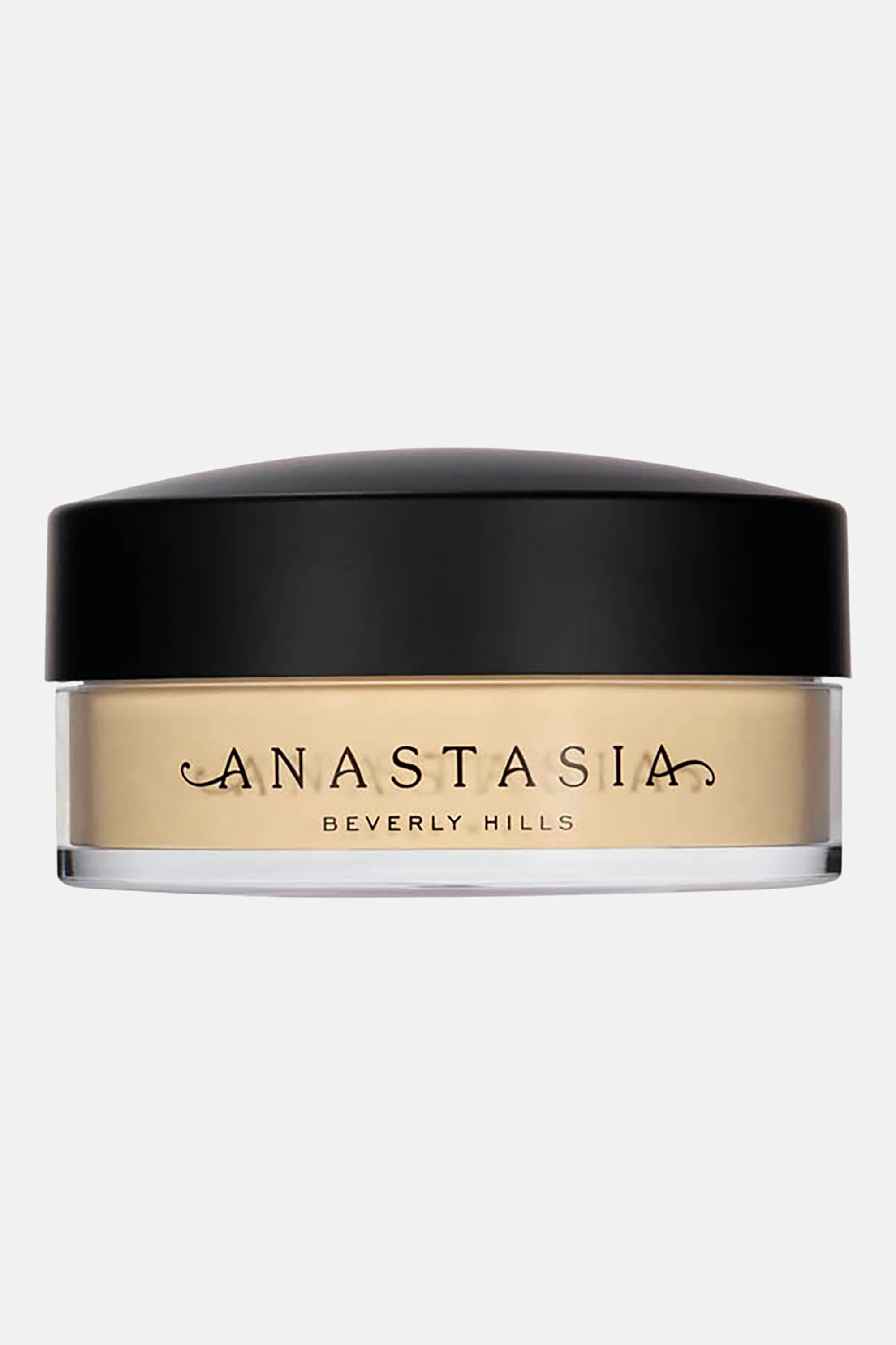 Anastasia Beverly Hills Loose Setting Powder perfects, brightens and sets makeup in place with ease. This lightweight, superfine powder formula goes on smoothly as it absorbs oil, minimizes shine and leaves you with a flawless matte finish. This silky formula gives the complexion a seamless, soft-focus effect, blurs the look of imperfections and extends the wear of your makeup. First, tap a small amount of the powder into the lid. Next, saturate the side of a makeup sponge or powder brush with the powder, tap off the excess and then lightly press and roll in areas you want to set. Focus on the T-zone and under-eye area.For a natural set, dust powder over the face using a large powder brush.