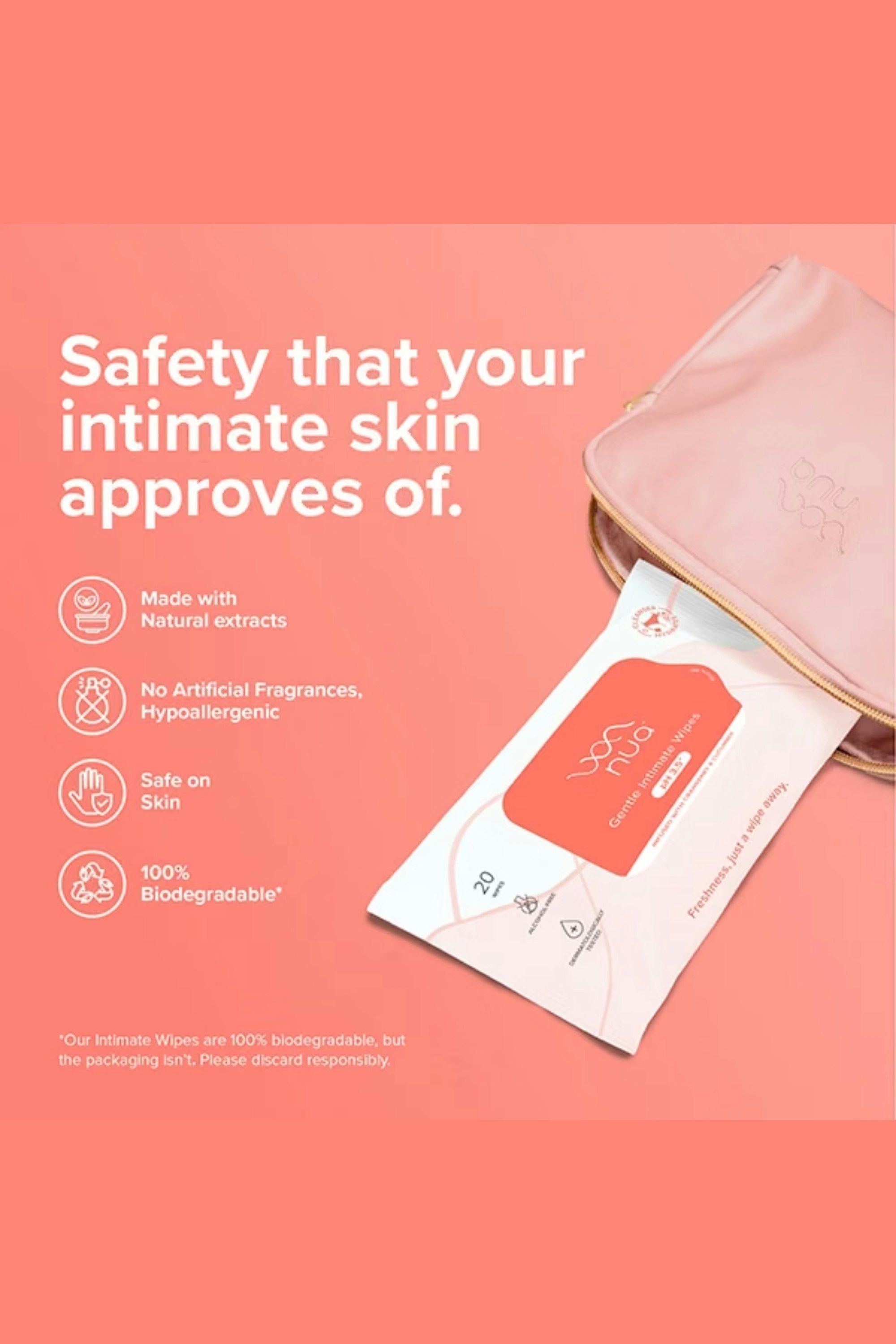 Gentle Intimate Wipes are pH-balanced, dermatologically tested wipes enriched with cranberry, cucumber, and aloe vera to hydrate, soothe, and keep irritation and odour away. Free from harsh chemicals, they’re safe for everyday intimate care.Ideal for daily freshness—use post-washroom, during periods, after workouts, or anytime you need quick, gentle cleansing on the go. Remove one wipe, gently cleanse the external intimate area , and then dispose of the wipe.