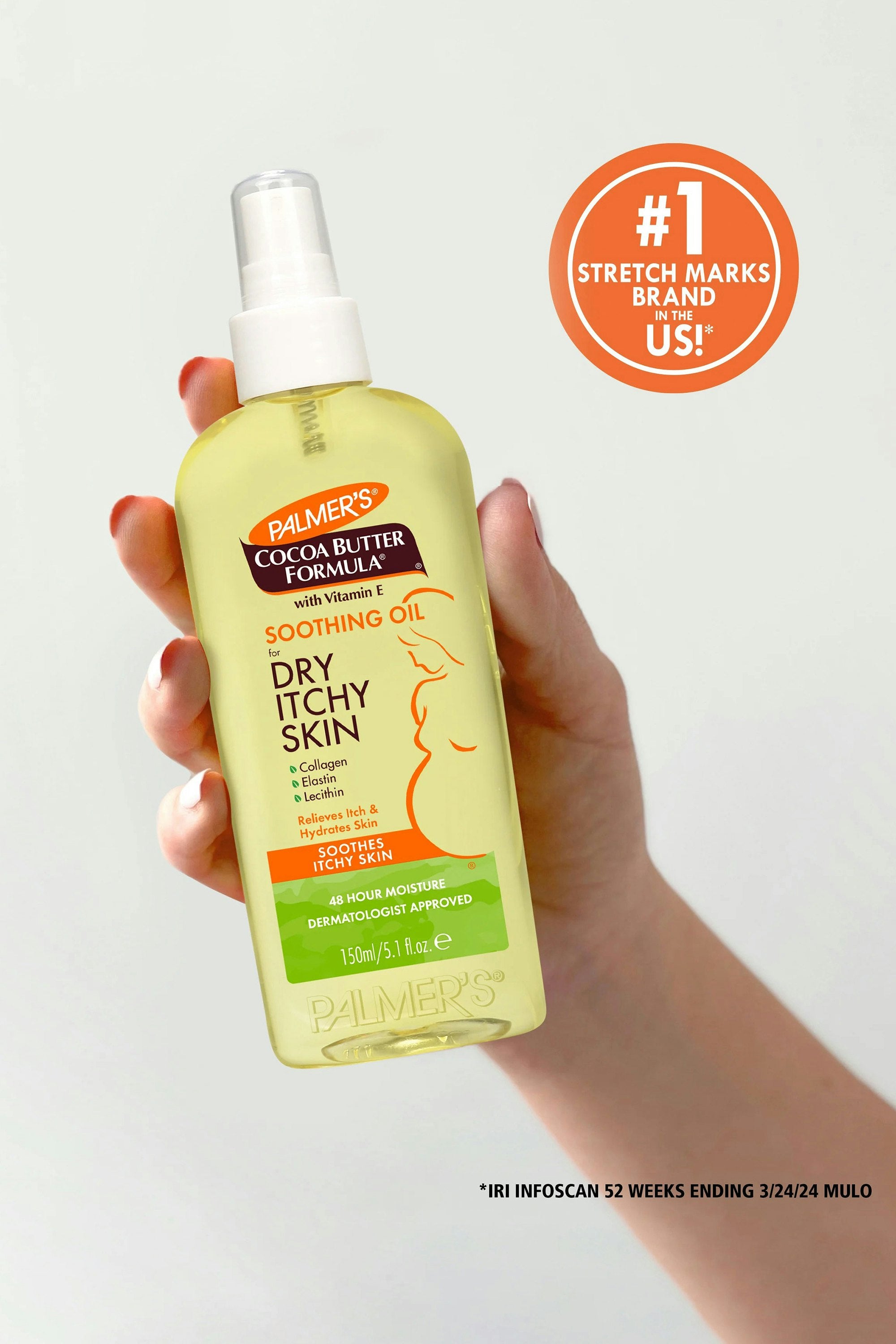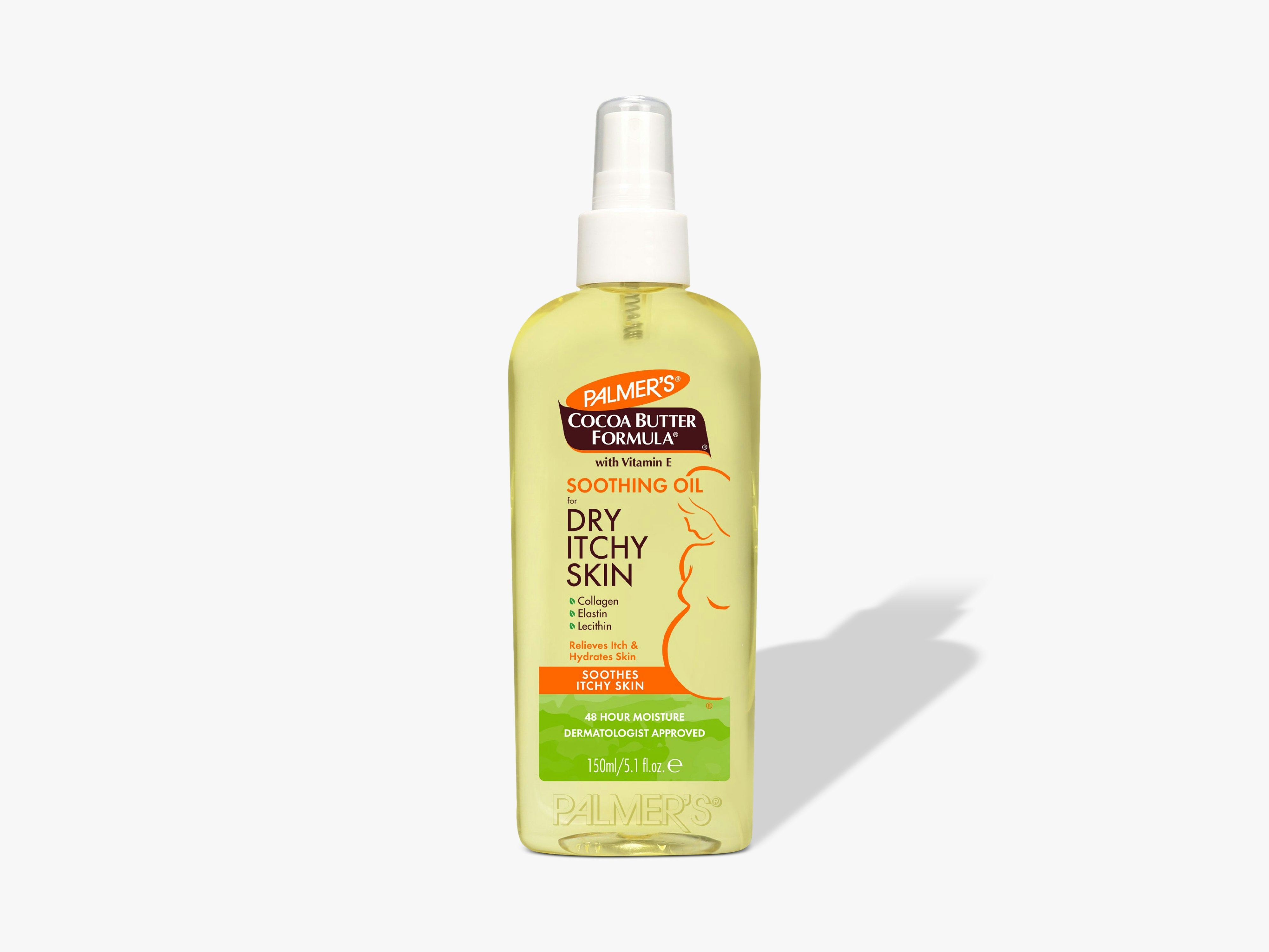 A soothing shield in a spray — calm your skin’s itch, lock in moisture, and glide through growth phases feeling cared for. Spray onto damp skin after showering, then gently pat or massage until absorbed. It can also be applied on dry skin to calm an itch. Reapply as needed, especially to areas of tension or tightness.