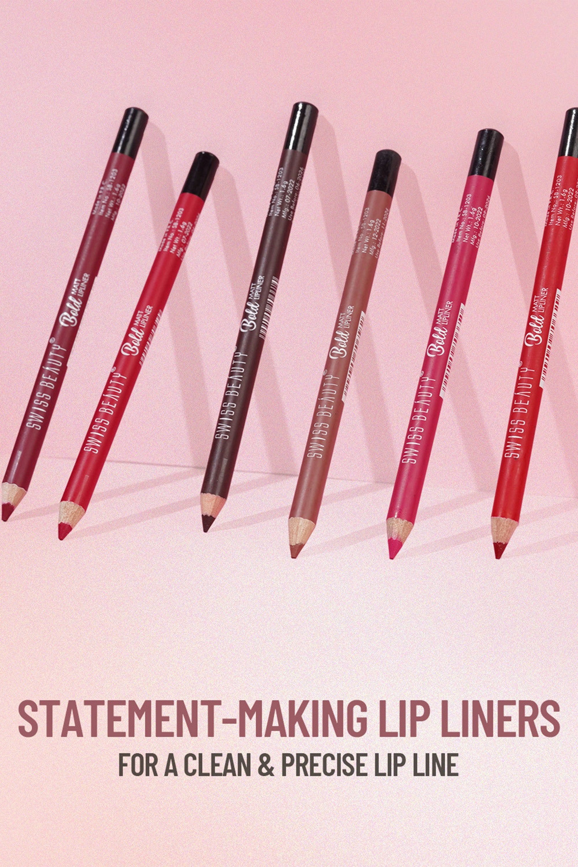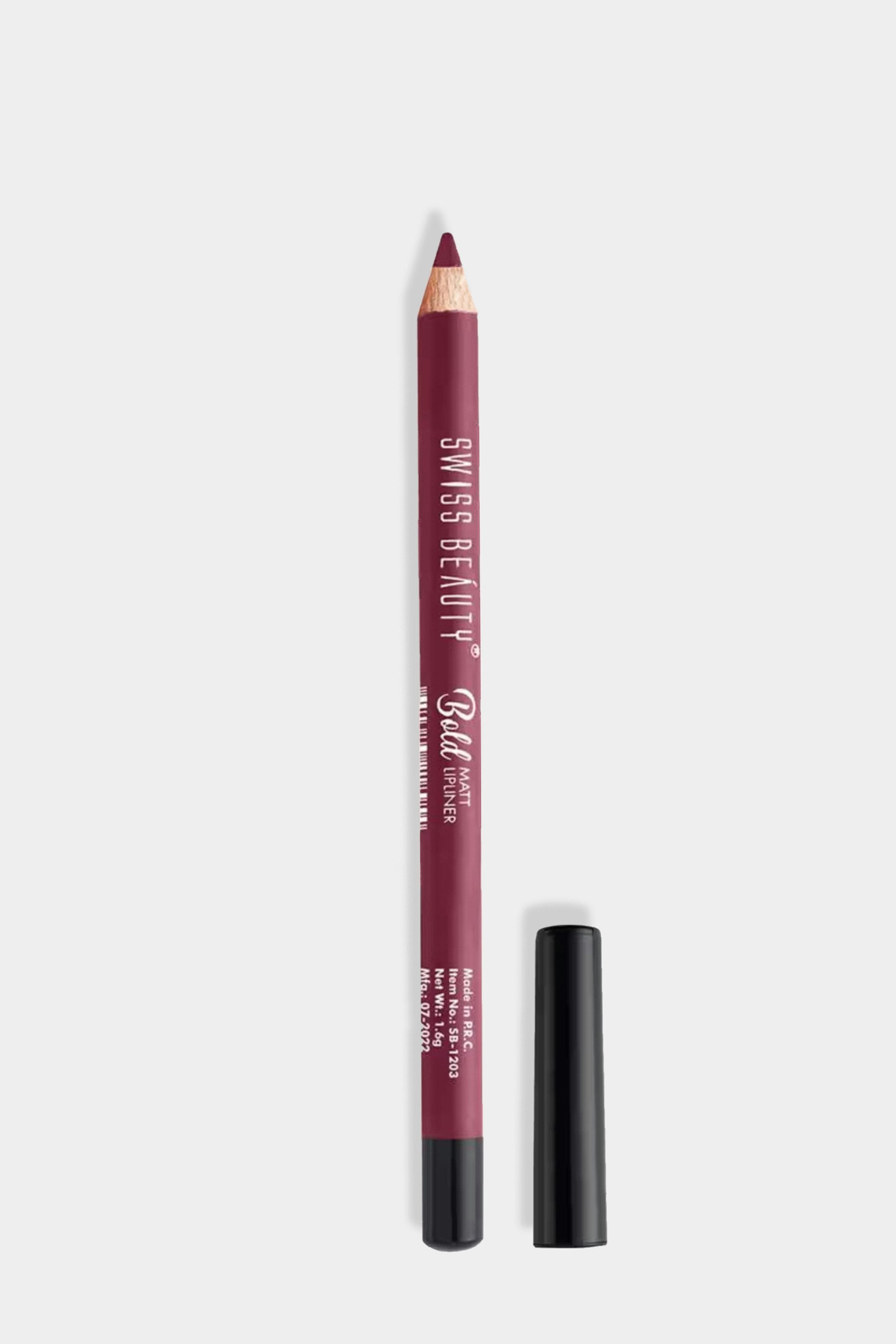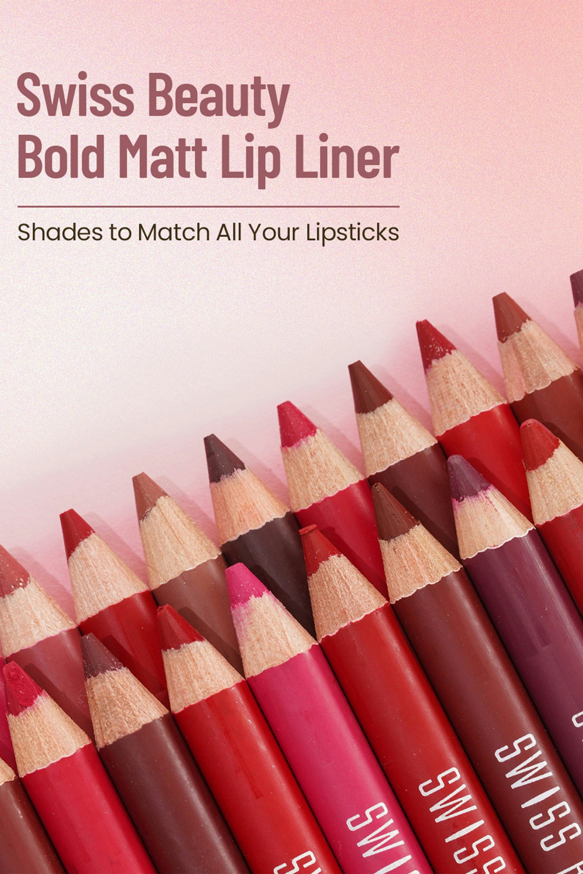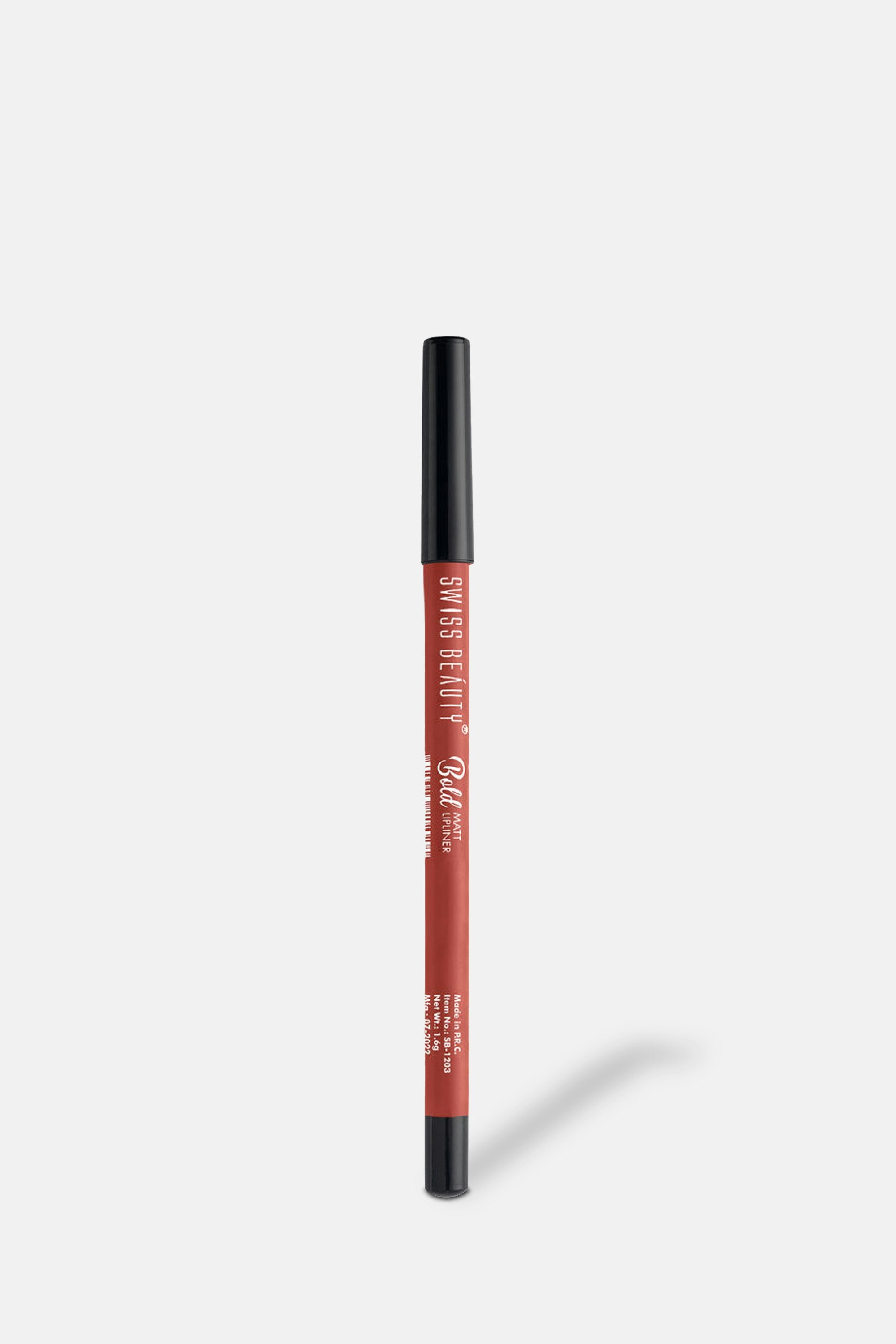 The Swiss Beauty Bold Matt Lip Liner offers rich, highly pigmented colour that complements a wide range of lipsticks and skin tones. This creamy, smooth-textured liner glides effortlessly onto the lips, allowing for precise and defined application. Infused with moisturising Castor Oil and Glycerine, it keeps lips hydrated while preventing feathering and bleeding. Enjoy long-lasting wear without the need for frequent touch-ups, whether you are sipping your favourite drink or out for the evening. Packaged in a sleek, compact design, it's perfect for on-the-go use. Outline your natural lip shape, fill in with liner for a matte base, then top with lipstick or gloss for a stunning finish.