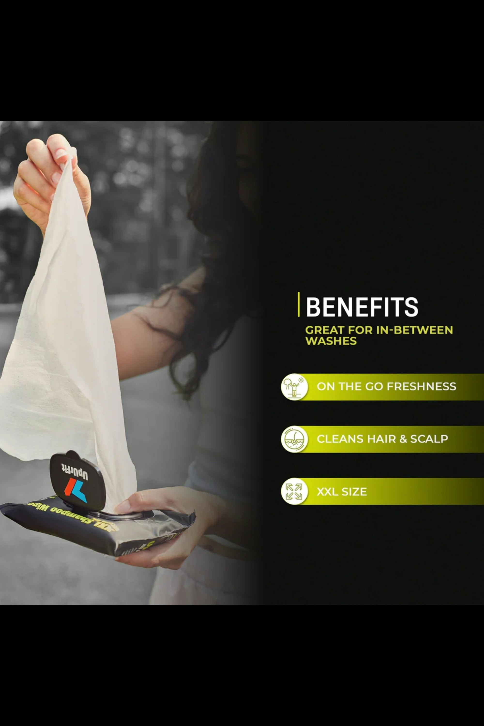 These Shampoo Wipes instantly refresh your scalp by removing sweat, oil, and dirt no water or towel needed. Oversized and gentle, they’re perfect for quick hair clean-ups after workouts, travel, or busy days. Pull out a wipe, unfold completely, and rub gently over the scalp to lift off grime, sweat, or oil. Let it dry naturally. No water needed. Dispose after use.