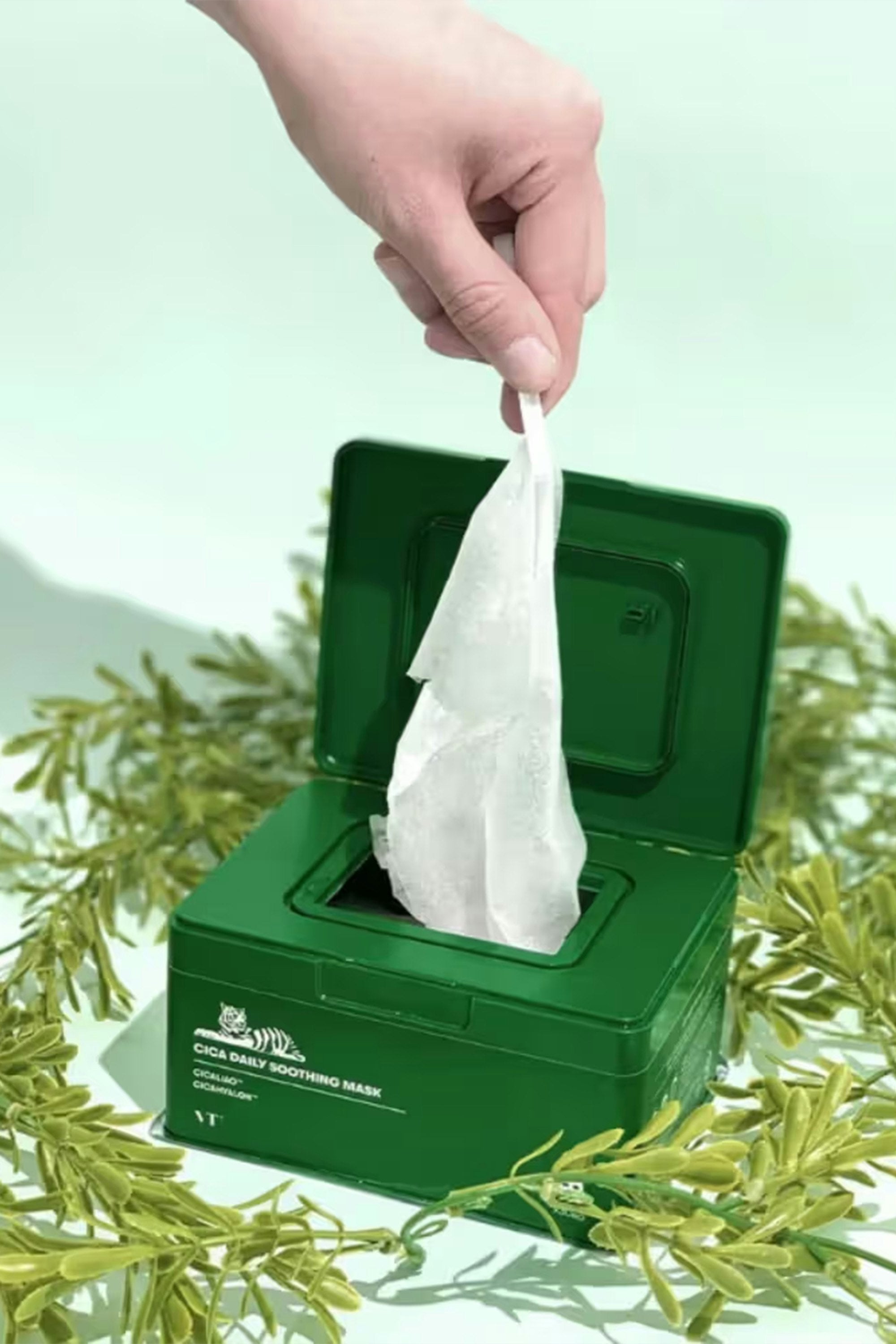 Experience ultimate hydration — The VT Cosmetics Cica Daily Soothing Mask, enriched with Cicaliao™ and Cicahyalon™, provides soothing care while deeply hydrating dry, irritated, and stressed skin. After cleansing and toning, apply the mask to your face and relax for 10-15 minutes. Remove and gently pat in the remaining essence for full absorption.