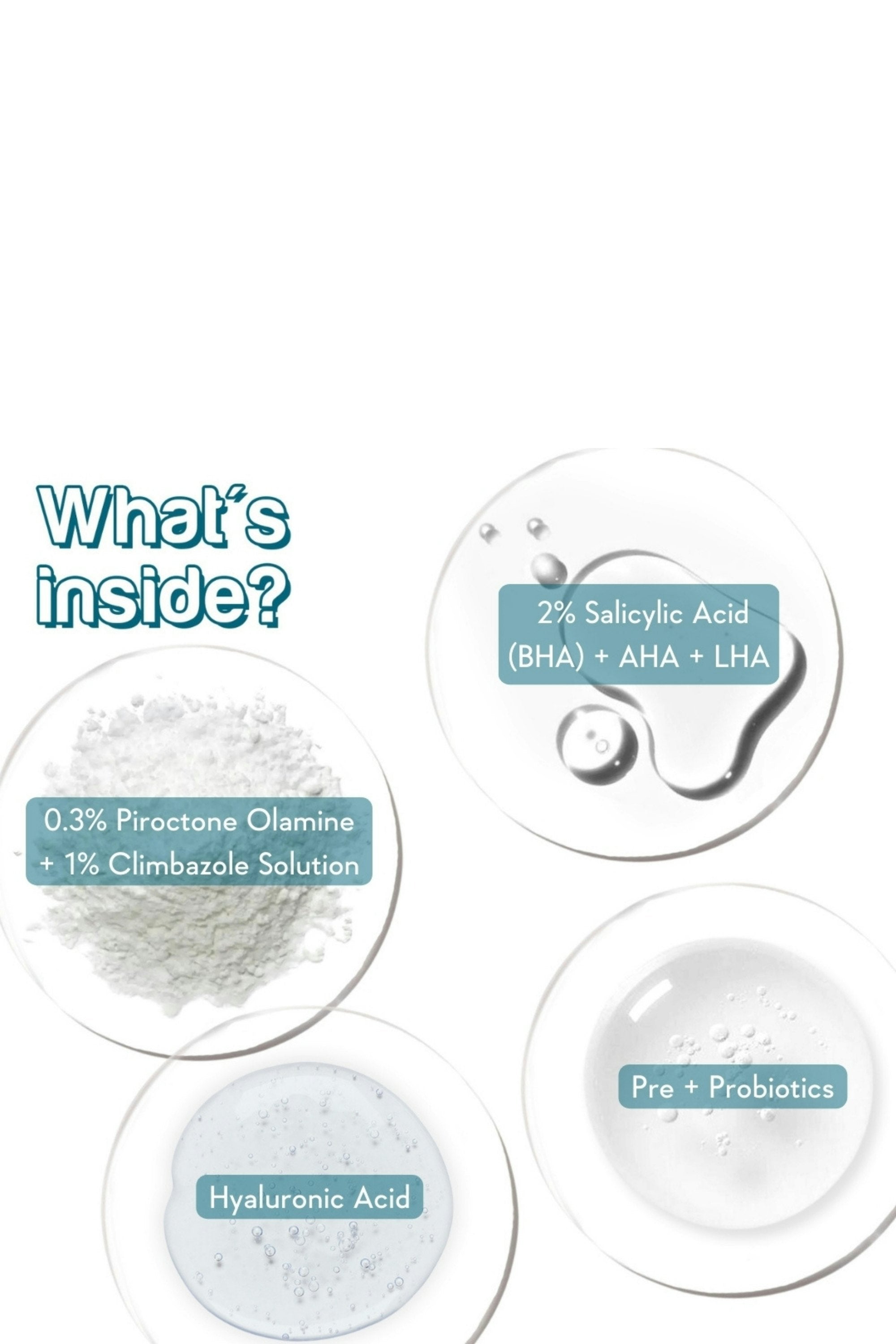 Hyaluronic Acid, Panthenol, Salicylic Acid (BHA), and Lactic Acid (AHA)